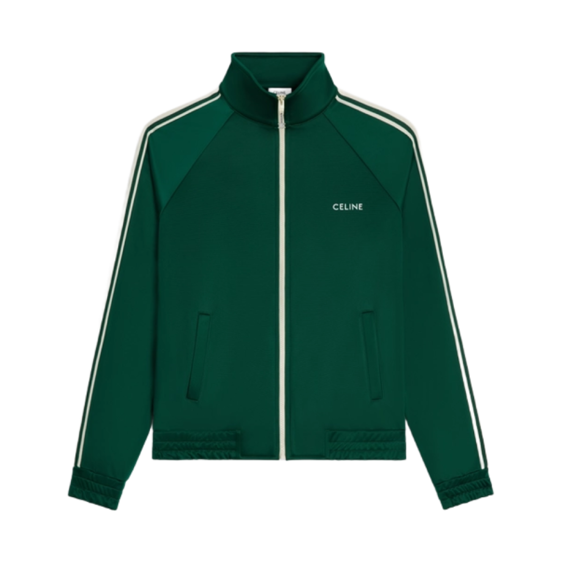 Celine Tracksuit Jacket in Vintage Double Jersey Vert Bouteille Off White
