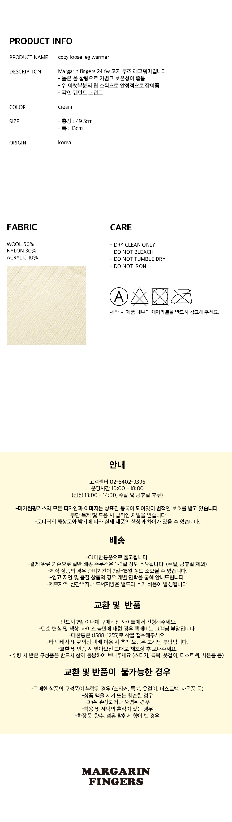 Margarin Fingers Cozy Loose Leg Warmer Cream