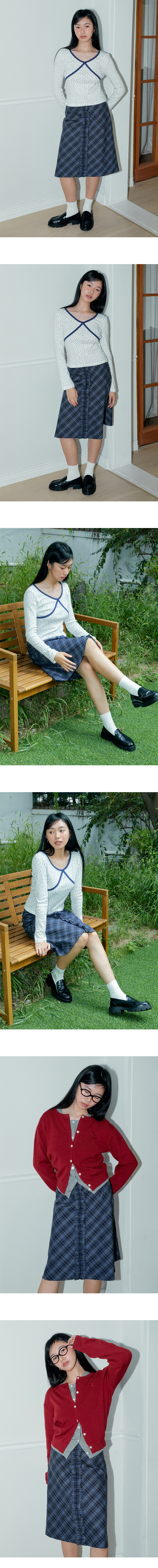마가린핑거스 체크 프릴 미디 스커트 네이비
