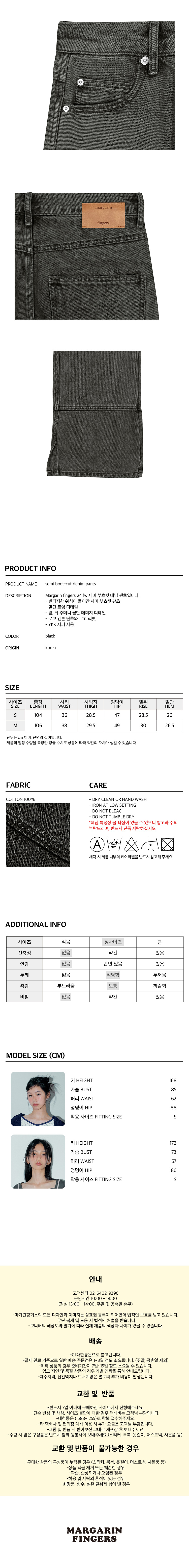 마가린핑거스 세미 부츠컷 데님 팬츠 블랙
