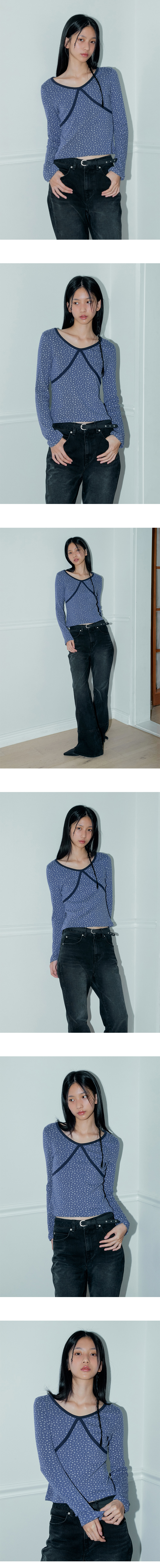 마가린핑거스 라인 플로럴 티셔츠 네이비