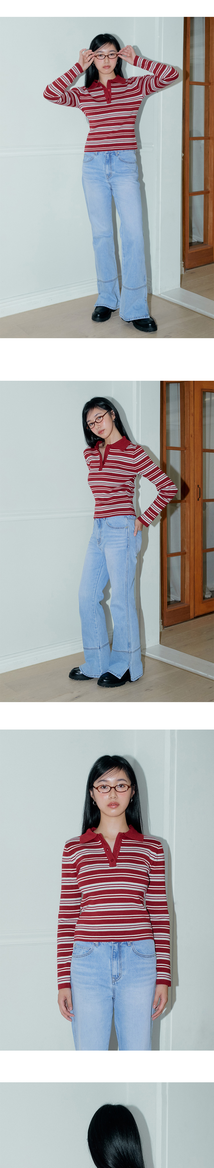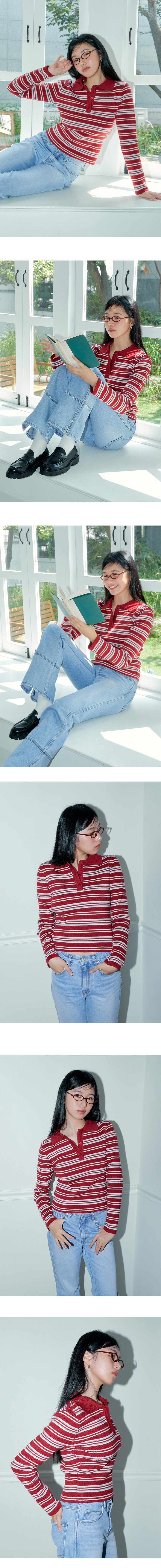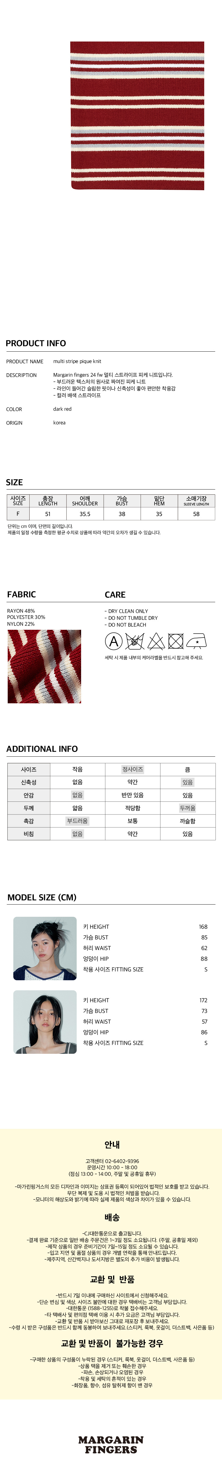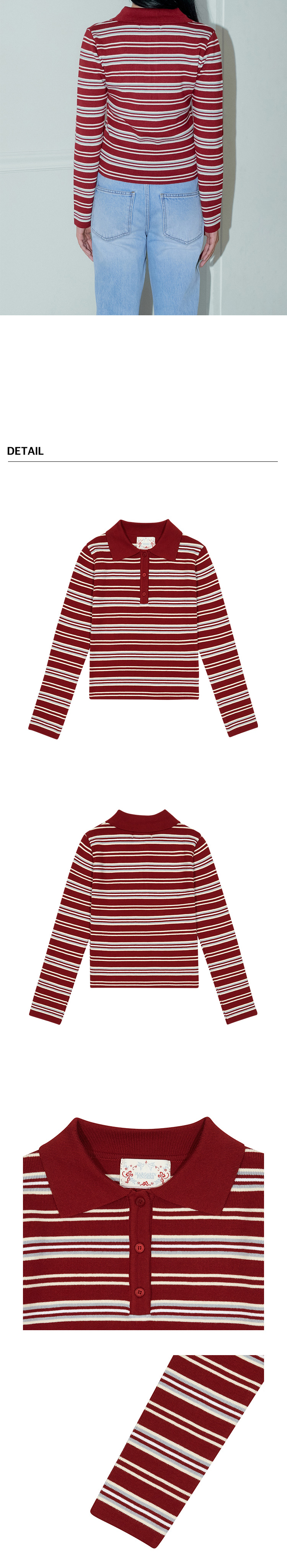 마가린핑거스 멀티 스트라이프 피케 니트 다크 레드