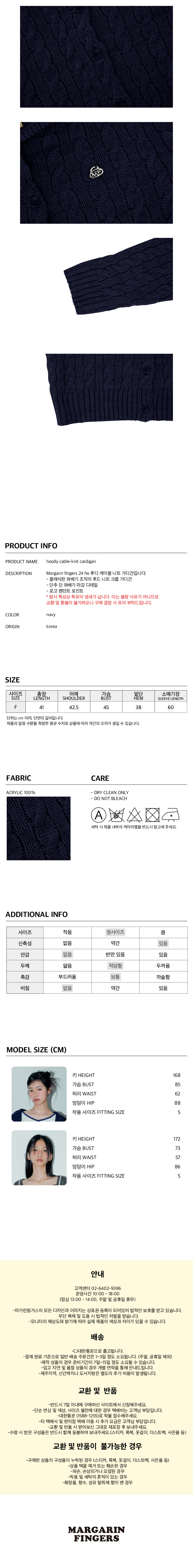 마가린핑거스 후디 케이블 니트 가디건 네이비