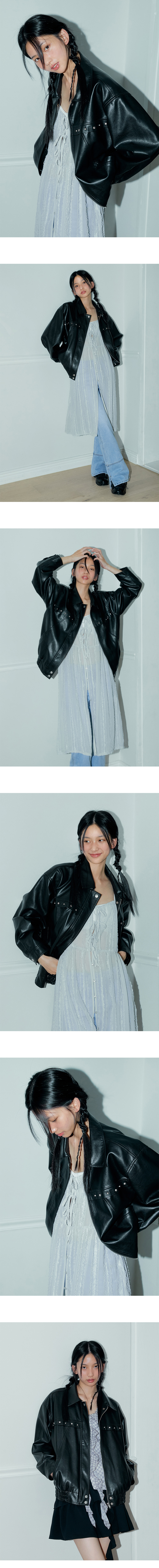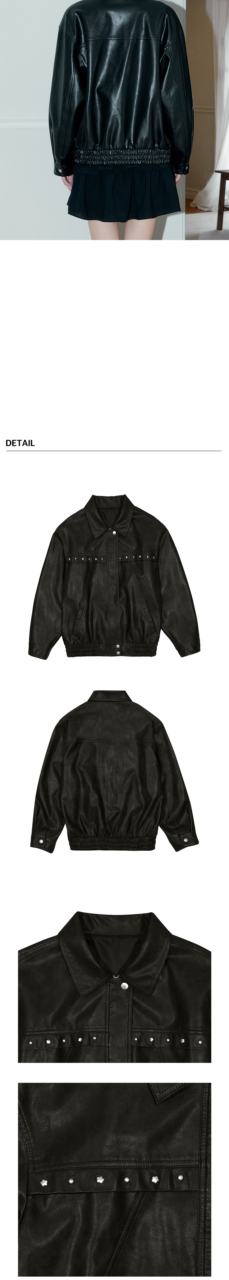 마가린핑거스 리벳 페이크 레더 자켓 블랙