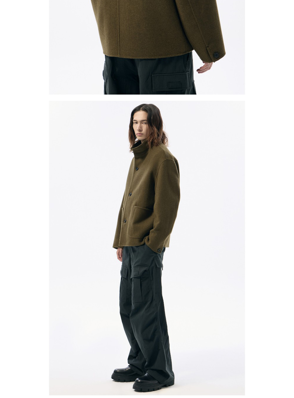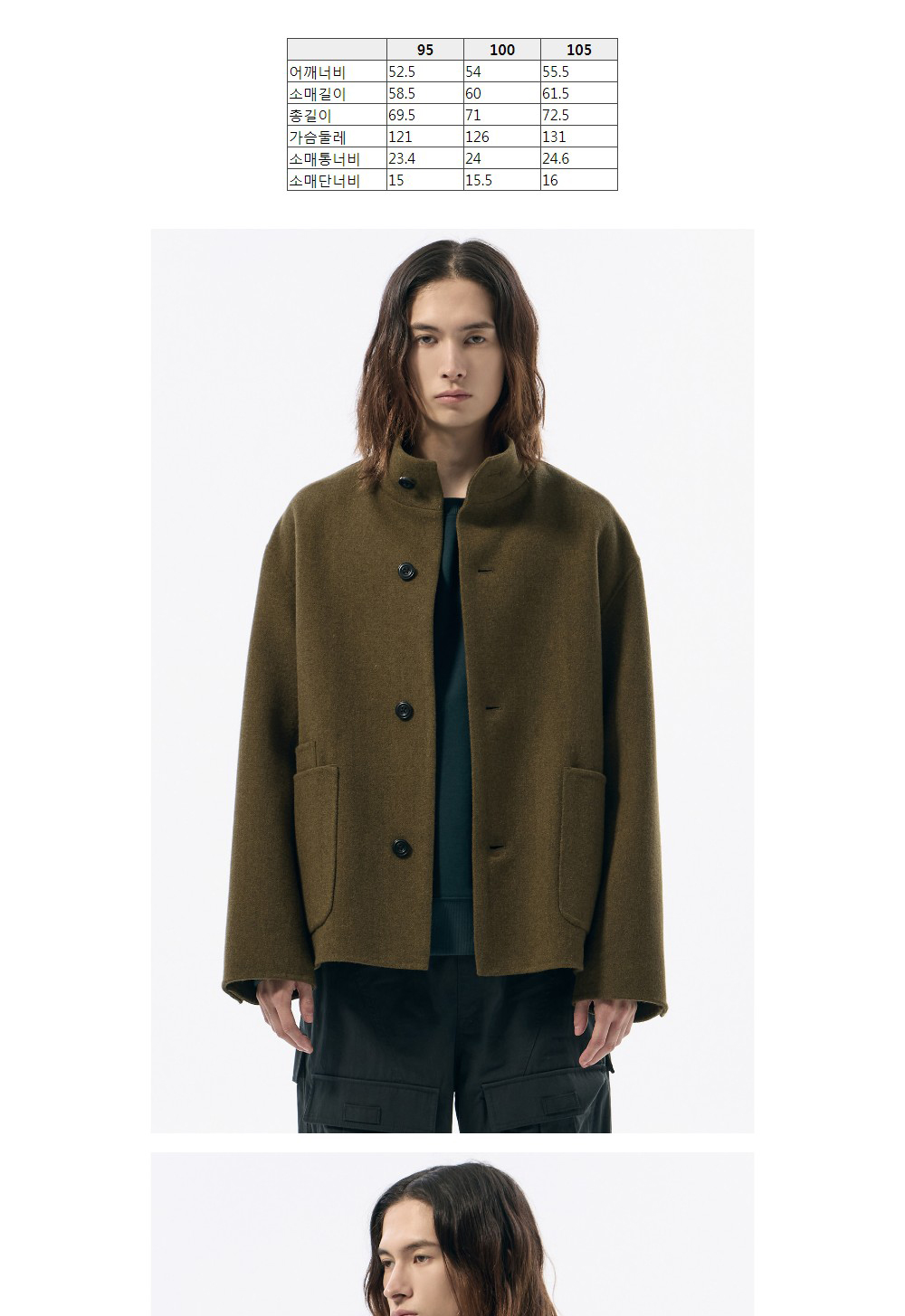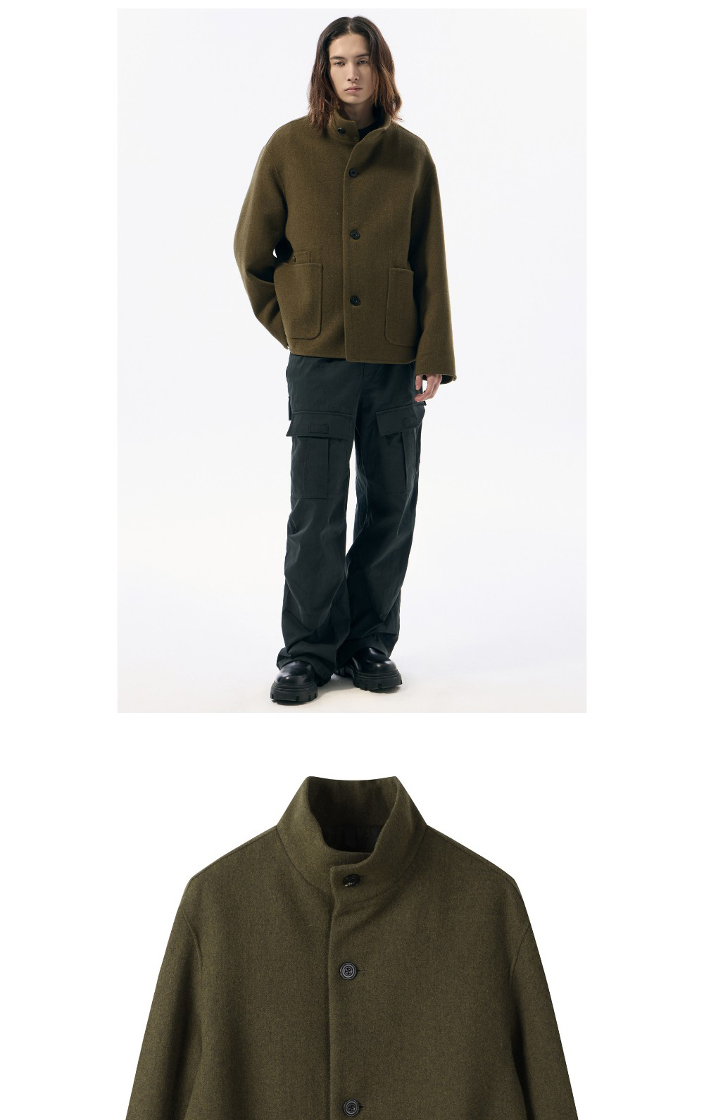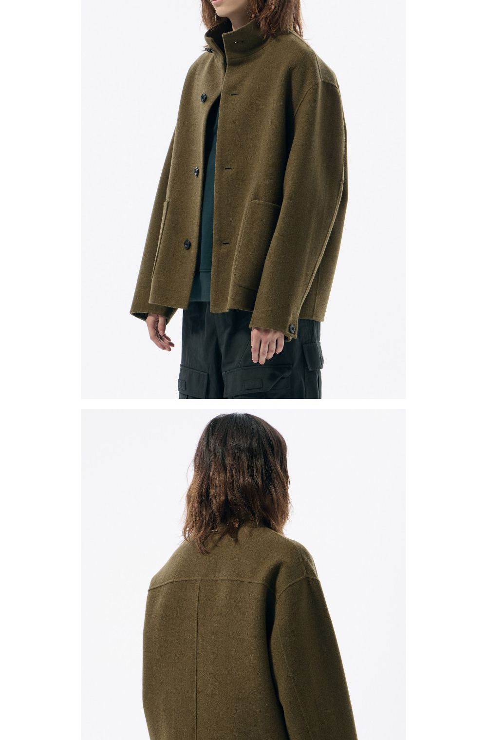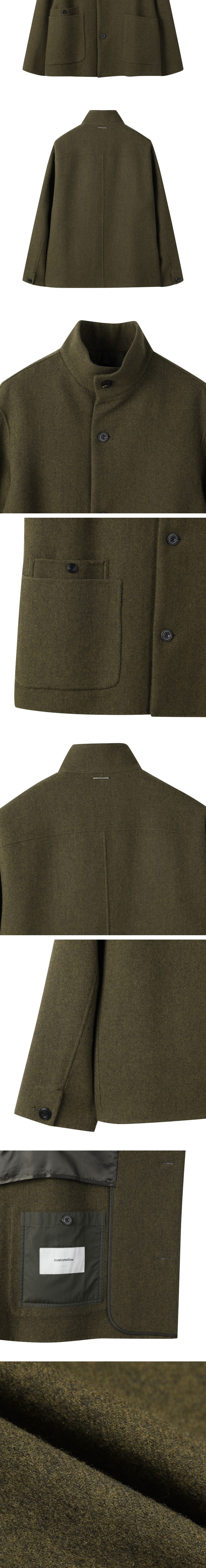 커스텀멜로우 울 핸드메이드 하이 넥 자켓 카키