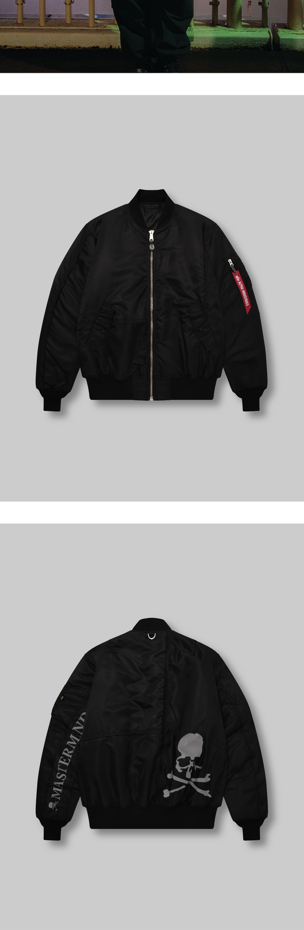 아이코닉한 스컬 그래픽으로 완성된 마스터마인드 월드 x 알파 인더스트리 MA-1 자켓입니다. - 리플렉티브 마스터마인드 로고 - 리버시블