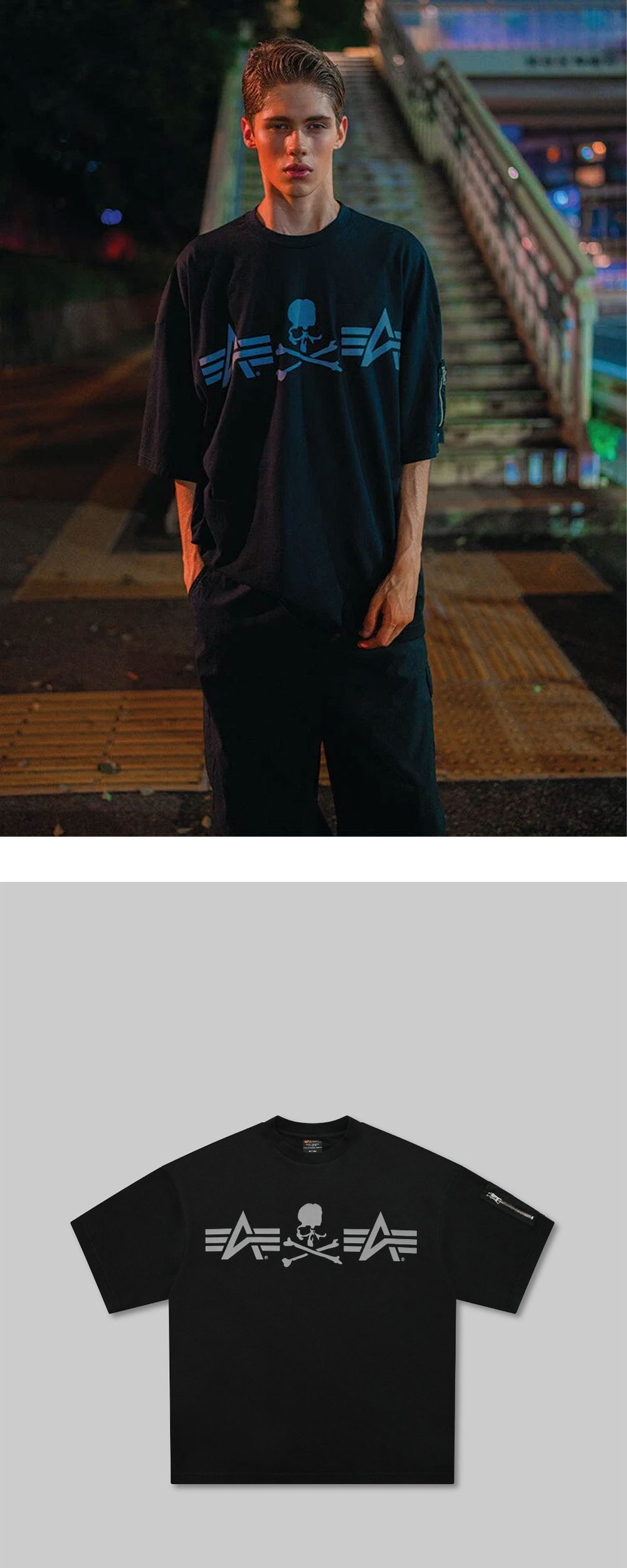 아이코닉한 스컬 그래픽으로 완성된 마스터마인드 월드 x 알파 인더스트리 시거 포켓 SS 티입니다. - 전면의 마스터마인트 시그니처 스컬 - 후면의 'MASTERMIND' 로고 - 전/후면 리플렉티브 프린팅