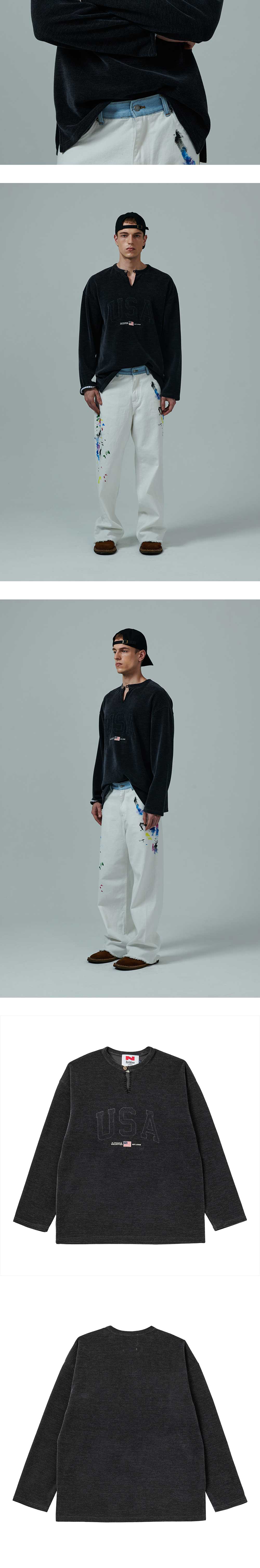 엔 아카이브 핸드 메이드 디테일 아메리칸 드림 롱 슬리브 워시드 블랙