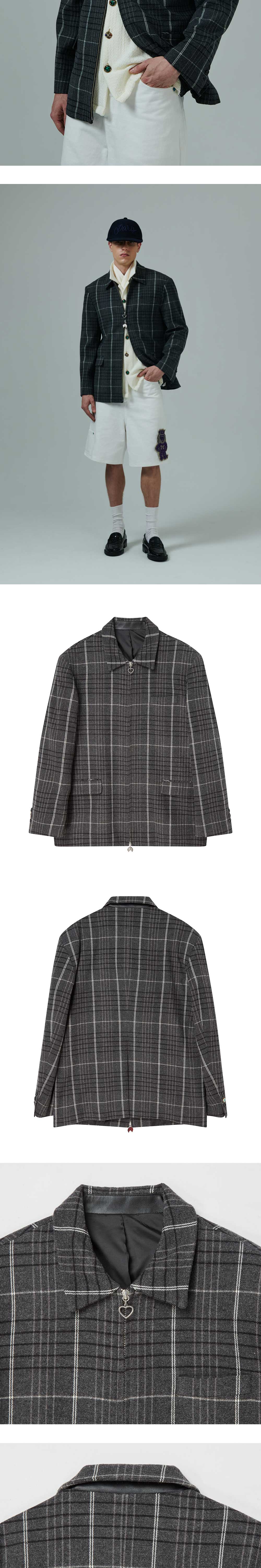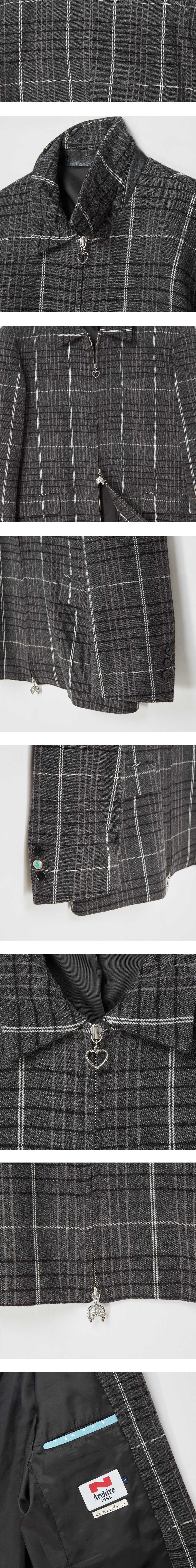 엔 아카이브 빈티지 디테일 울 체크 라이딩 자켓 그레이