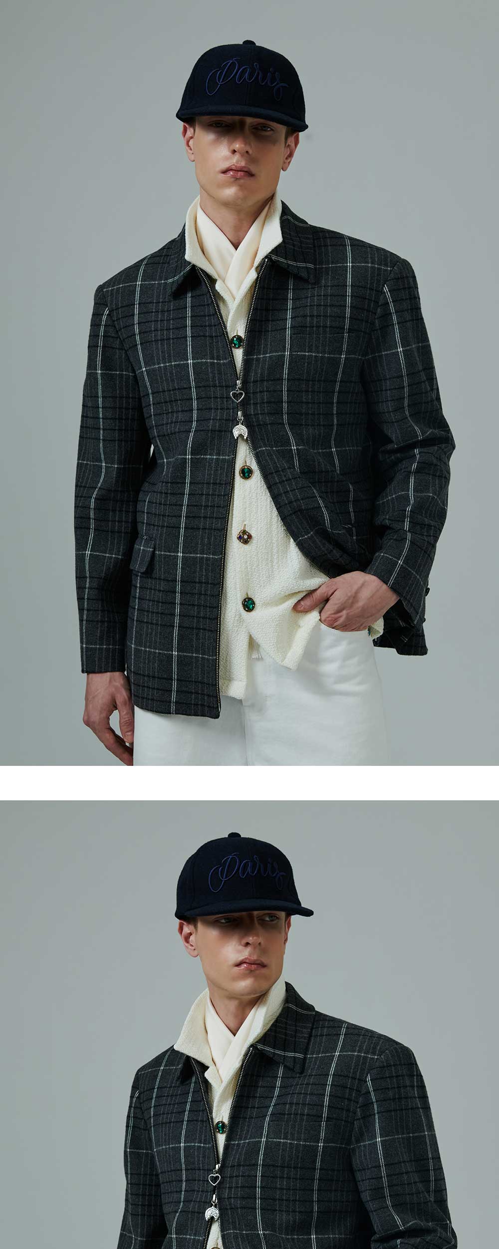 ㆍ아카이브 라인의 울 혼방 소재로 제작된 점퍼 형태와 테일러드 자켓을 결합한 아트 피스 ㆍ90년대 방식으로 제작된 테일러링을 통해 오리지널리티를 복각 ㆍ울 혼방된 소재를 테일러링을 통해 견고한 자켓의 형태로 완성 ㆍYKK 지퍼 위에 빈티지 메달을 더해 자체 제작된 빈티지 지퍼 디테일 ㆍ빈티지 원단으로 포인트를 더한 안주머니 디테일 ㆍ소매 리얼 버튼 ㆍ남녀공용 착용
