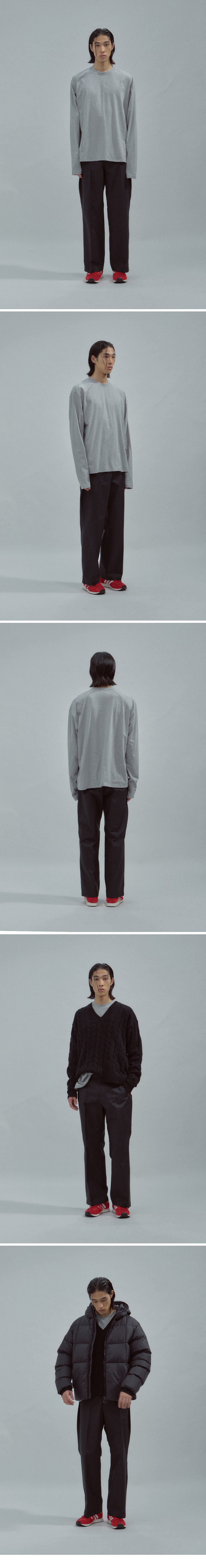 노클 언밸런스 롱 슬리브 티 그레이