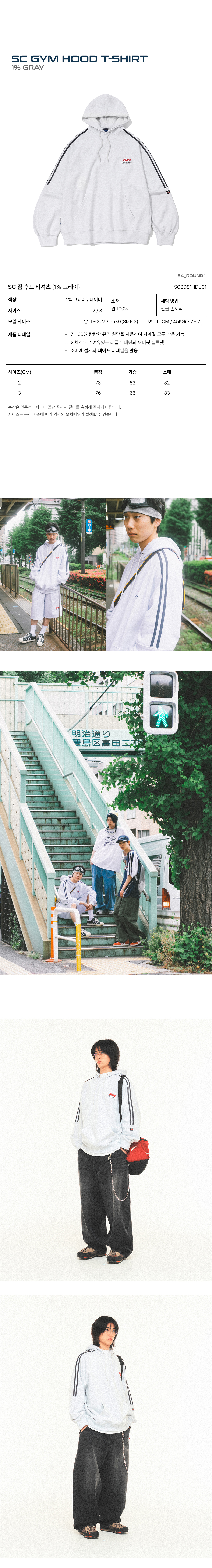 스포츠챔버 SC 짐 후드 티셔츠 1% 그레이