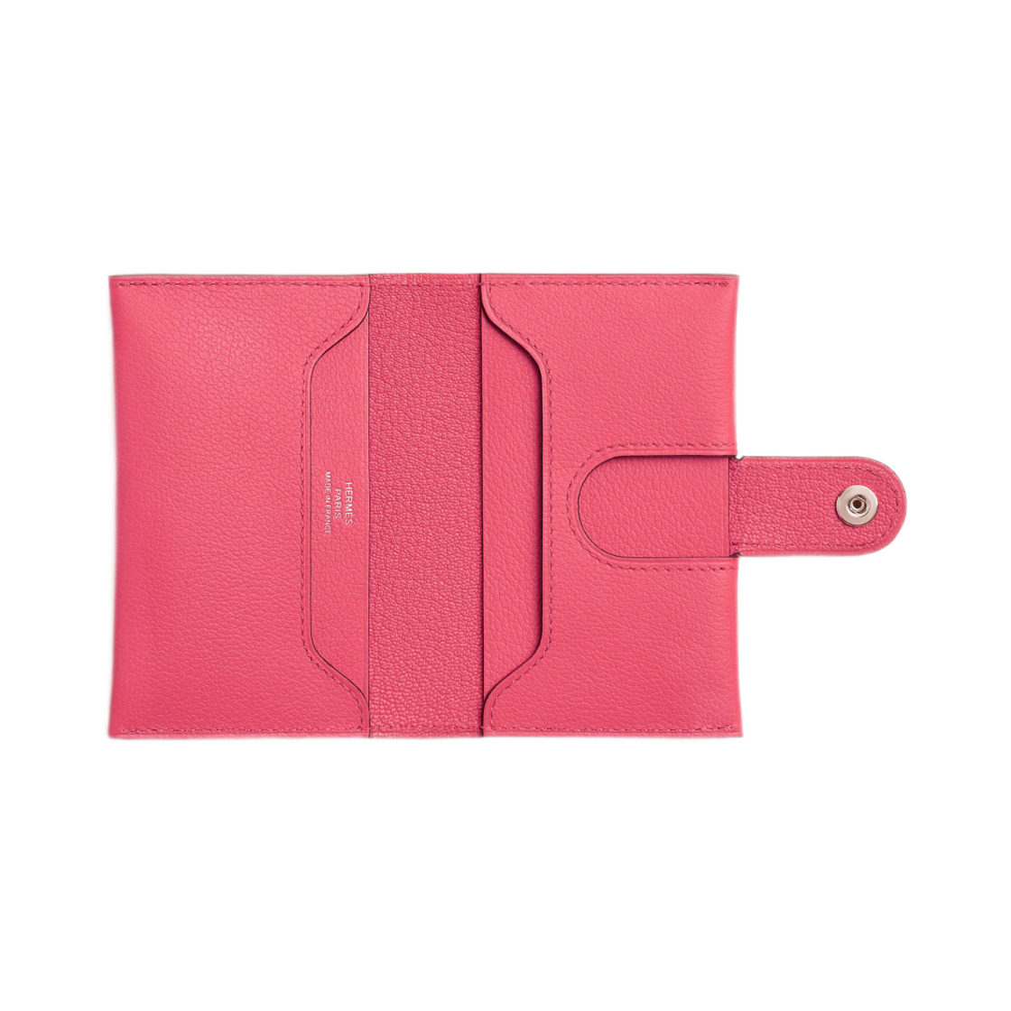 Hermes R.M.S Card Holder Evercolor & Palladium Rose Azalee