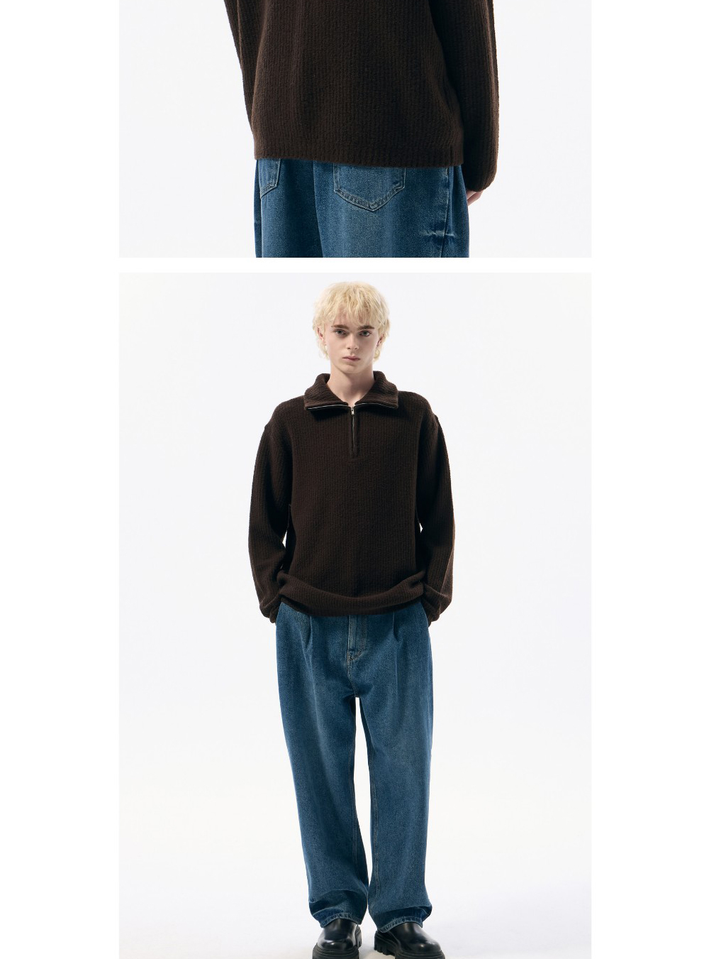 커스텀멜로우 클라우드 하프 집업 스웨터 브라운