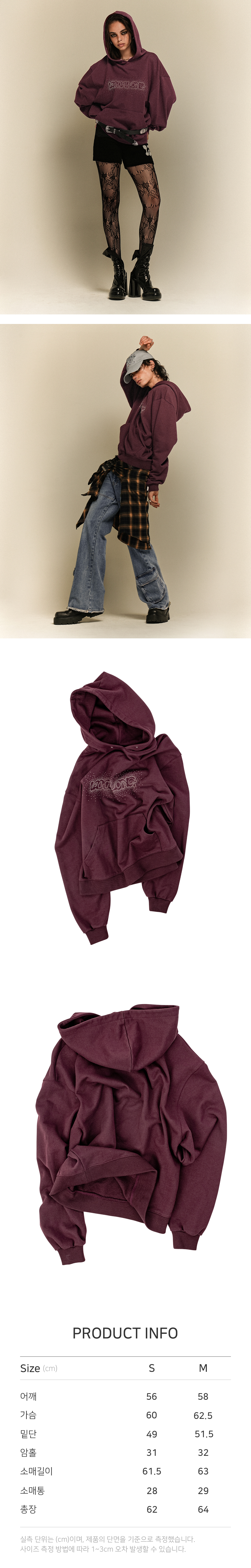 빈티지한 컬러와 중앙 라인스톤 핫픽스 로고가 포인트인 멜로우 그래픽 후드 FEATURE - 오버 사이즈 후드 - 백 타이포 시즌 그래픽