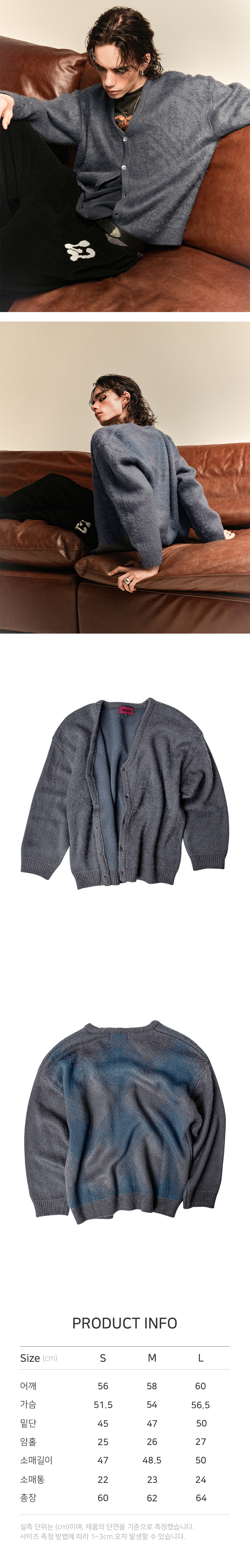체크 패턴과 소프트한 원사를 사용하여 포근한 분위기를 연출해주는 체크 가디건 FEATURE - 부드러운 브러쉬드 터치 원사 - 아가일 텍스타일 패턴 배색