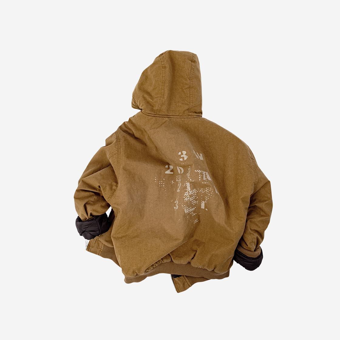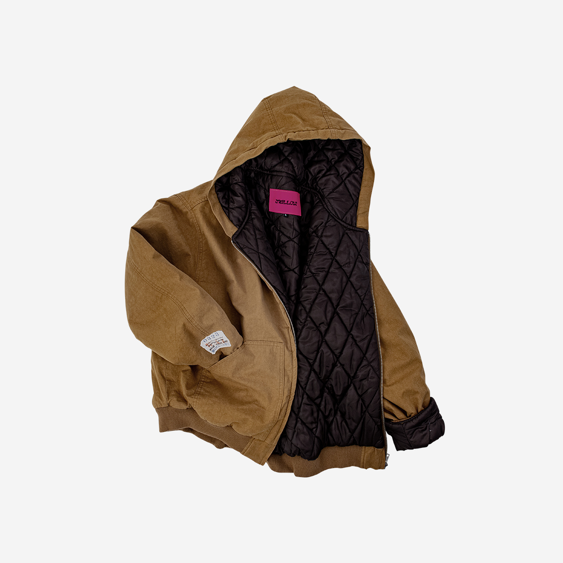 MELLOW Typo Graphic Over Hood Jacket Camel