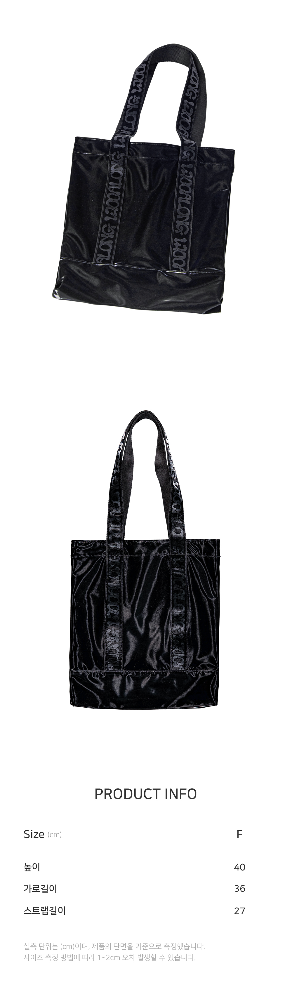 글로우 소재의 광택감이 시크하고 고급스러운 분위기를 연출해주는 멜로우 레터링 에코백 FEATURE - 글로우 소재 - 멜로우 레터링 로고 - 내부 포켓