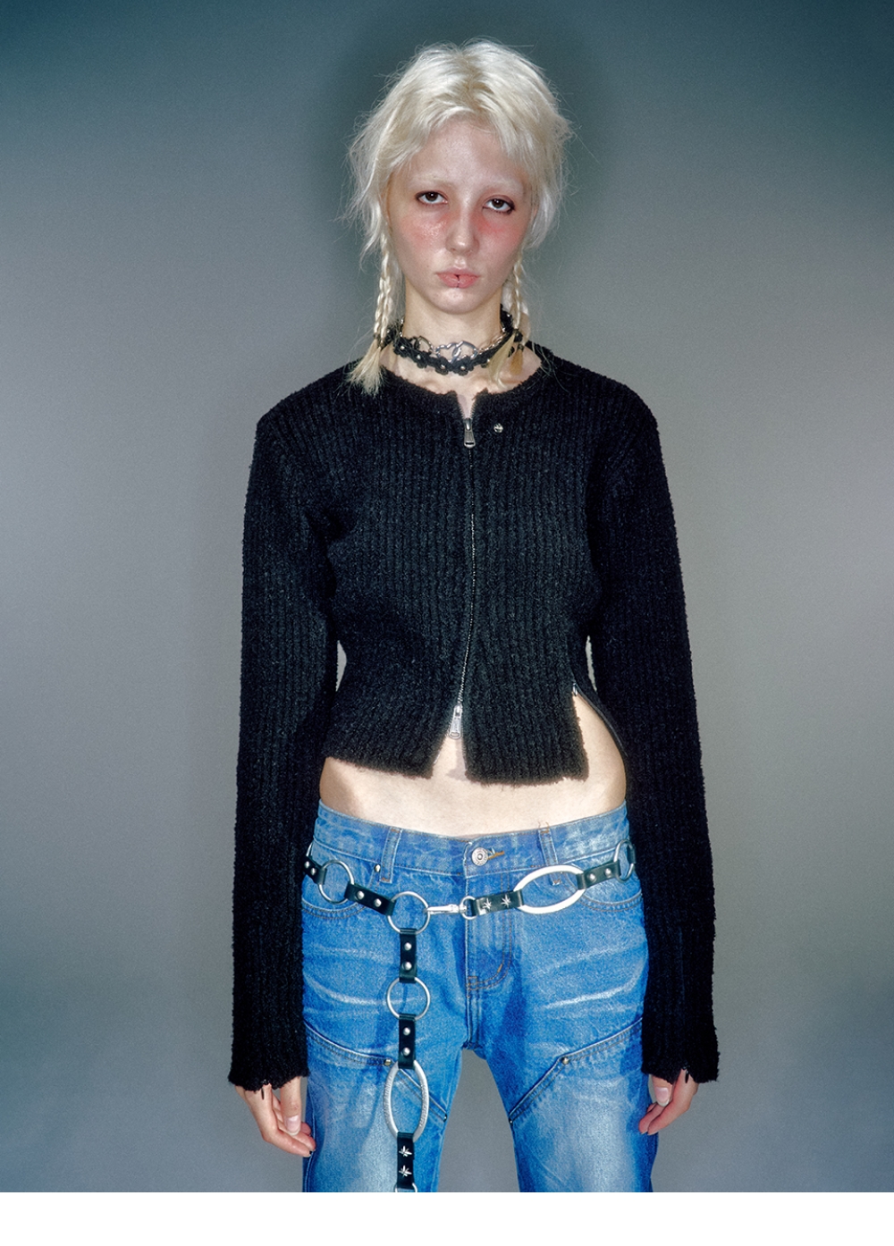 Vacant Archive Neah Knitted Zip-Up Black