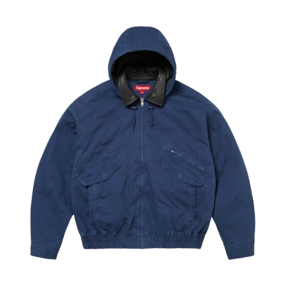 Supreme Leather Collar Utility Jacket Navy - 24FW