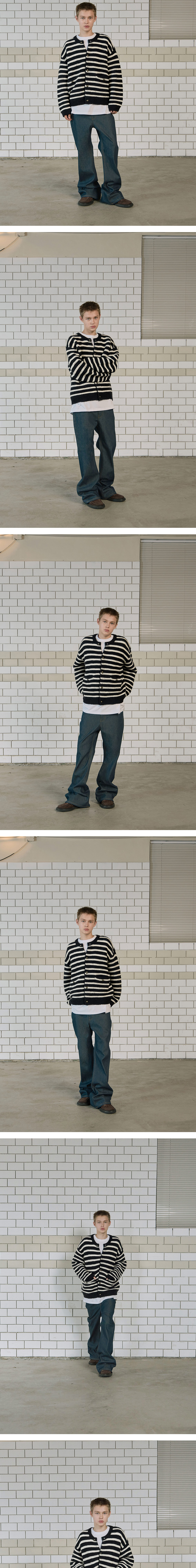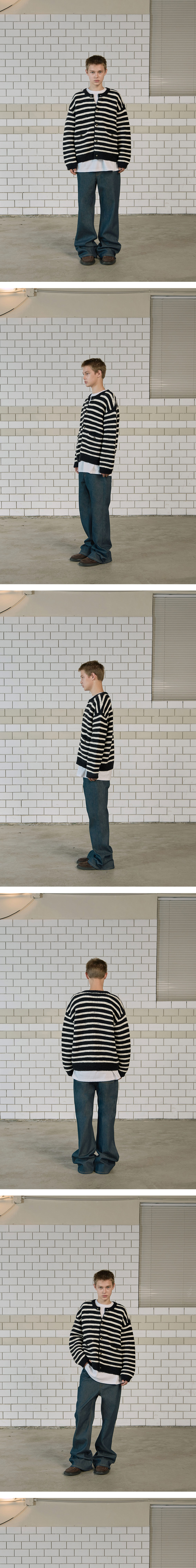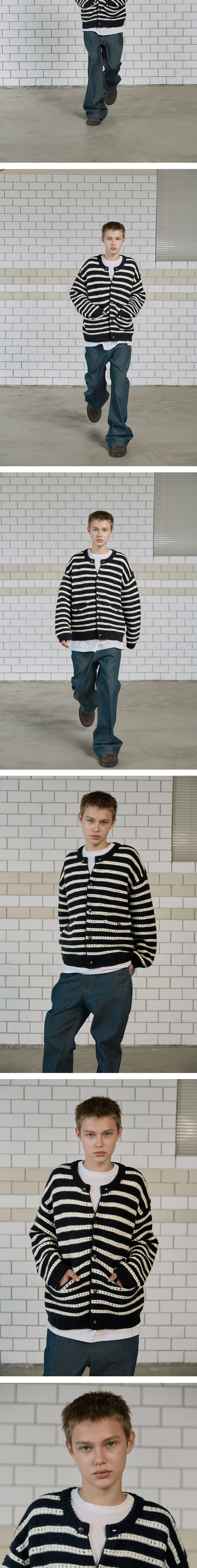 [KREAM 단독 리오더/더블적립] STU Round Neck Stripe Cardigan Navy