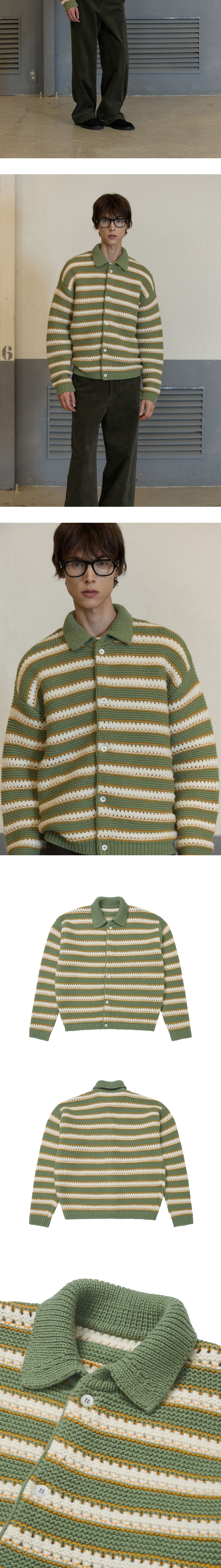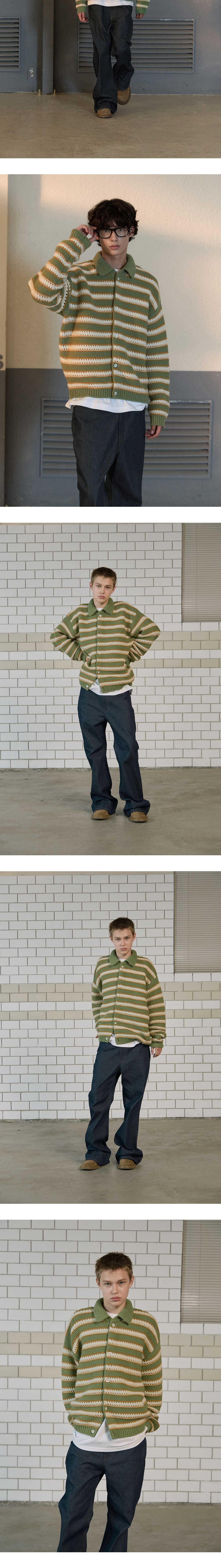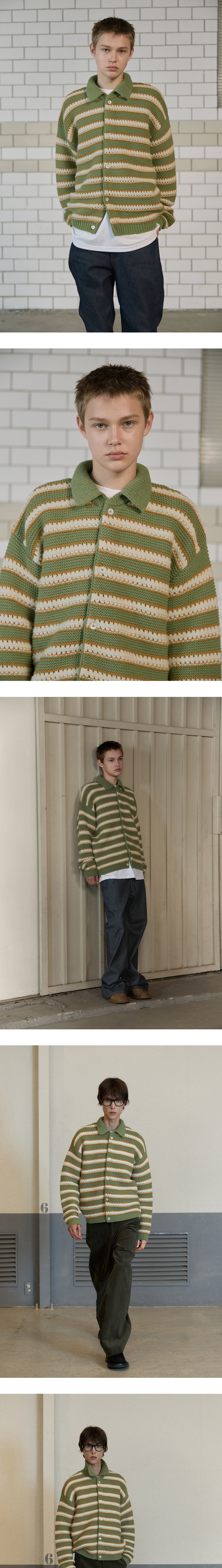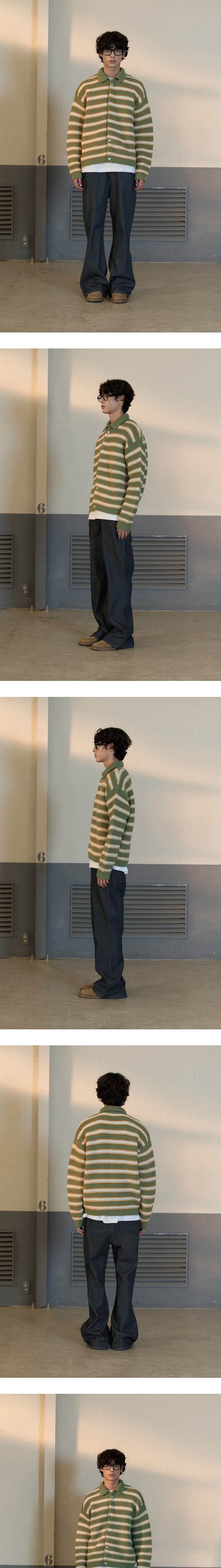 에스티유 울 카라 스트라이프 가디건 올리브그린