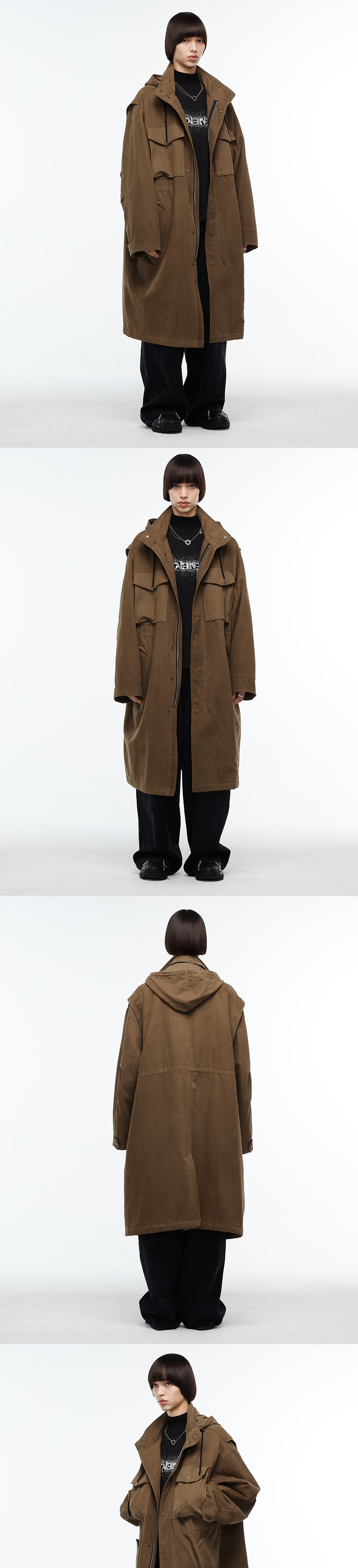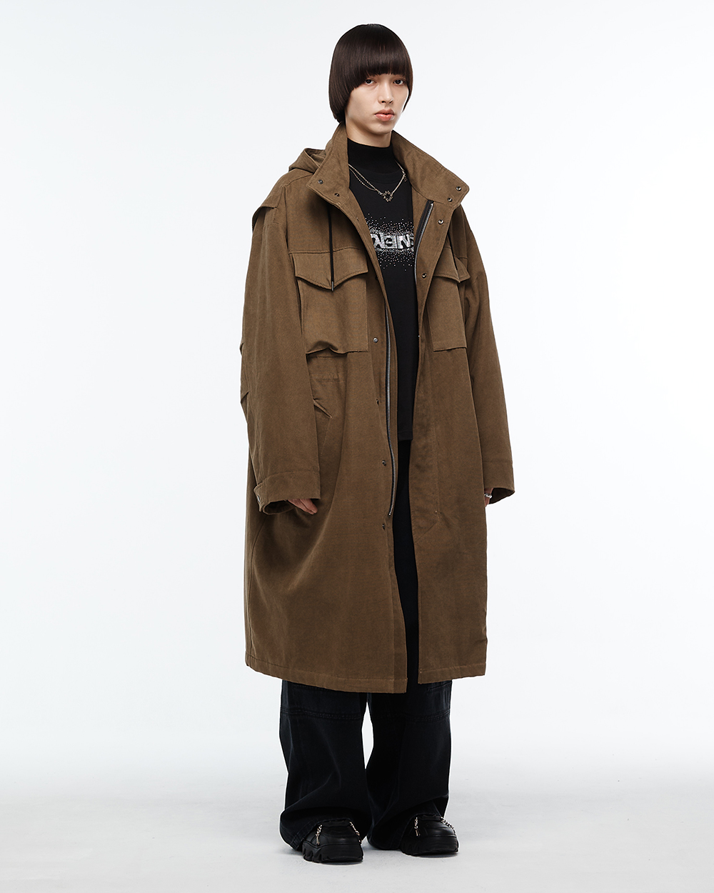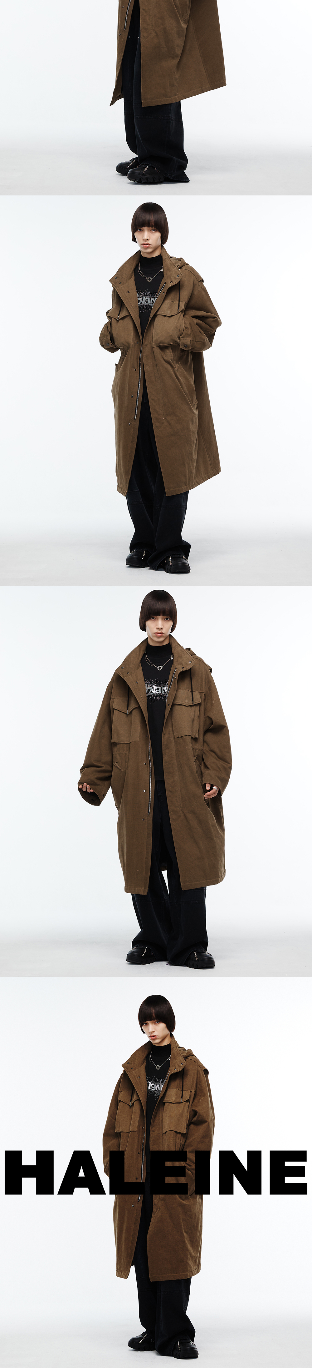 Haleine Oversized Military Long Parka Khaki Brown (VJ313)