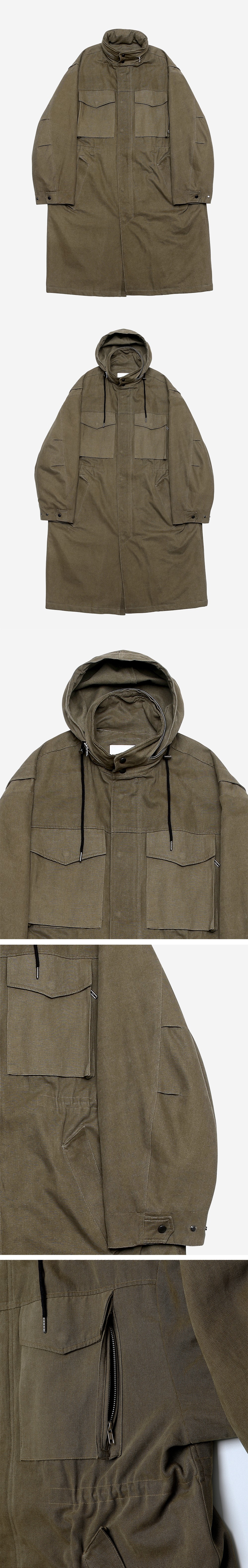 실제 색상은 상세 사진과 흡사함 M65 밀리터리 필드자켓을 재해석한 오버사이즈 롱 파카입니다. 옥스포드 코튼 소재를 워싱 가공하여 빈티지한 매력을 보여주며, 오버사이즈 실루엣과 2온즈 안감을 통해 볼륨감 있으면서도 세련된 실루엣을 연출합니다. 후디드 디테일을 통해 캐주얼한 연출 또한 가능하며, 다양한 유틸리티 포켓 디테일들이 전체적인 구조감을 완성시켜줍니다. -DETAIL- 오버사이즈 실루엣 지퍼 및 버튼 이중 잠금 히든 후디드 디테일 등판 액션 플리츠 및 아일렛 디테일 내부 스트링을 통한 사이즈 조절 소매 다트 디테일 2WAY 입체 포켓 디테일 -model- 184cm / 가슴둘레 83cm / 허리둘레 70cm / 엉덩이둘레 90cm - 2사이즈 착용