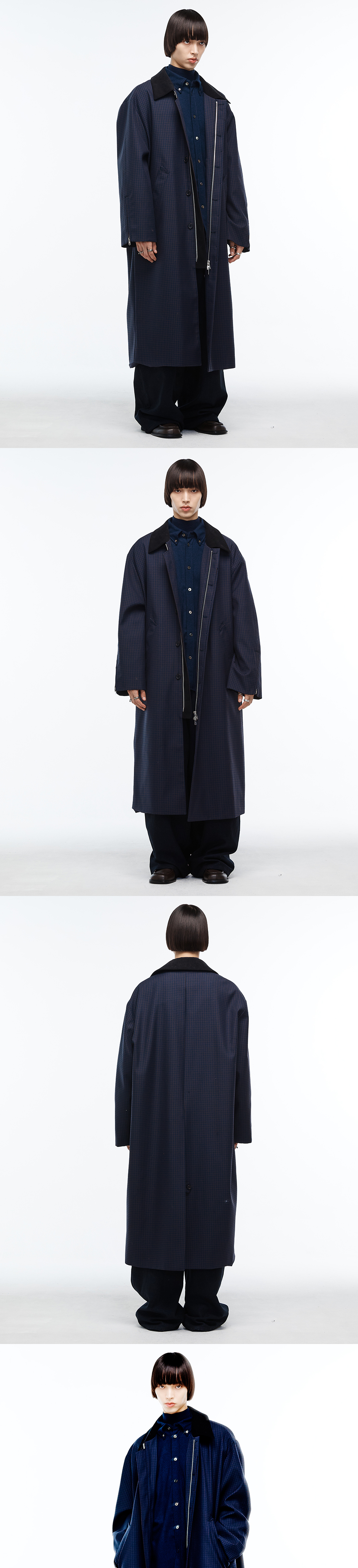 박시하고 긴 기장감의 싱글 맥코트 입니다. 유니크한 컬러 조합을 가진 울 체크 소재(FABRIC BY JAPAN)를 사용하였으며, 칼라 및 플라켓 부위 코듀로이 소재믹스를 통해 캐주얼한 감성을 더하였습니다. 스타일링에 따라 다양한 분위기의 연출이 가능한 제품입니다. -DETAIL- 오버사이즈 실루엣 지퍼 및 버튼 이중 잠금 벨트 포인트 아일렛 디테일 칼라 및 플라켓 코듀로이 소재 믹스 소매 지퍼 디테일 넥 비죠 디테일 -model- 184cm / 가슴둘레 83cm / 허리둘레 70cm / 엉덩이둘레 90cm - 2사이즈 착용_x000B_