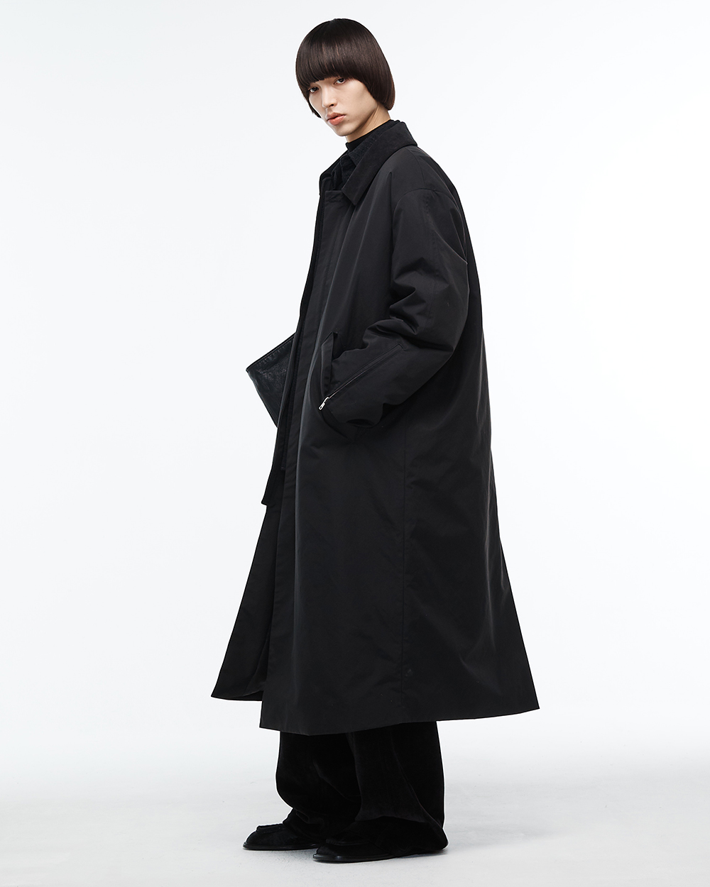 박시하고 긴 기장감의 싱글 맥코트 입니다. 칼라 및 플라켓 부위 코듀로이 소재믹스를 통해 캐주얼함을 연출하였으며, 4온즈 안감을 사용하여 볼륨감 있는 실루엣과 보온성을 더하였습니다. 스타일링에 따라 다양한 분위기의 연출이 가능한 제품입니다. -DETAIL- 오버사이즈 실루엣 지퍼 및 버튼 이중 잠금 벨트 포인트 아일렛 디테일 칼라 및 플라켓 코듀로이 소재 믹스 소매 지퍼 디테일 넥 비죠 디테일 -model- 184cm / 가슴둘레 83cm / 허리둘레 70cm / 엉덩이둘레 90cm - 2사이즈 착용