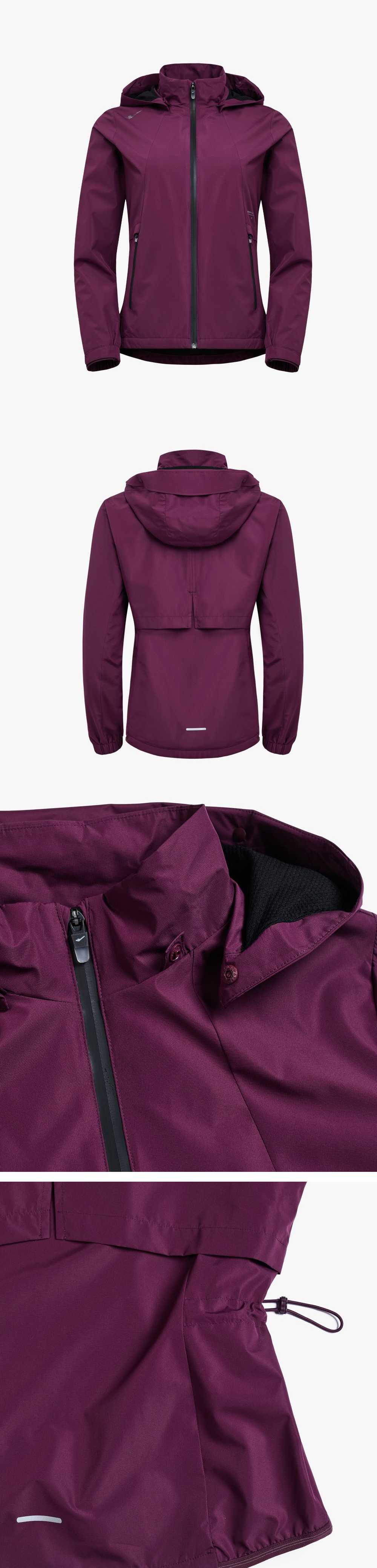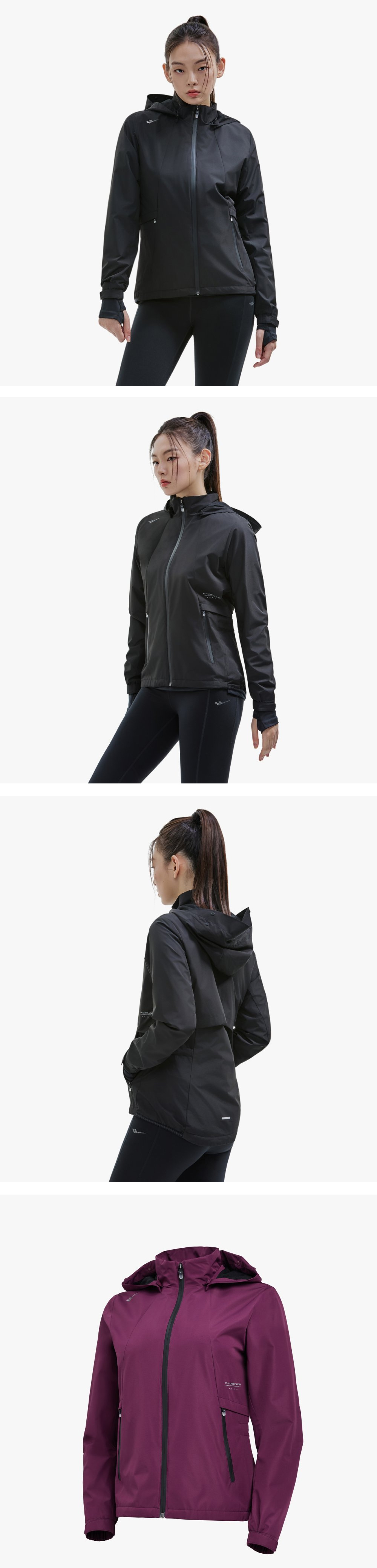 2LAYER 안감 방풍 러닝 자켓 바람은 막아주며, 등 부위 벤틀레이션 구조로 통기가 용이한 구조 등 부위 벤틀레이션 기능으로 운동시 발생하는 열기를 빠르게 배출 하여 쾌적한 착용감 허리부위 조임이 가능한 사양으로 스타일리쉬한 연출이 용이