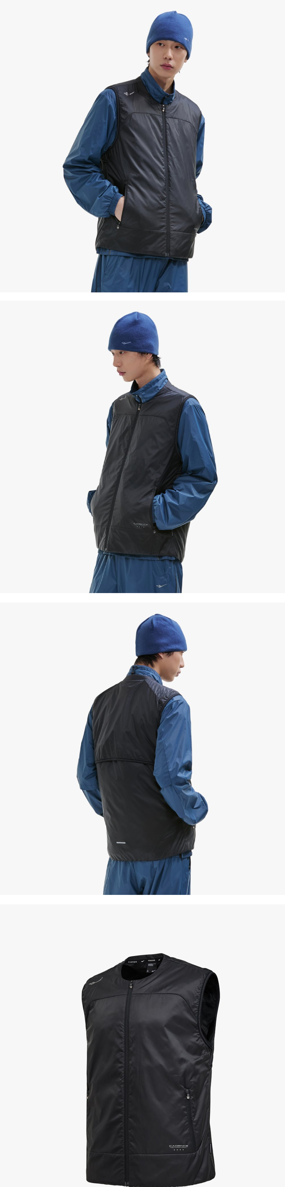 패딩 경량 러닝 베스트 경량 원단과 가슴부위 얇은 패딩 충전재 적용으로 경량성과 보온성이 우수함 등부위 벤틀레이션 기능으로 운동시 발생하는 열기를 빠르게 배출 하여 쾌적한 착용감 어깨라인 접밴드 사양으로 착용시 안정있는 착용감 제공
