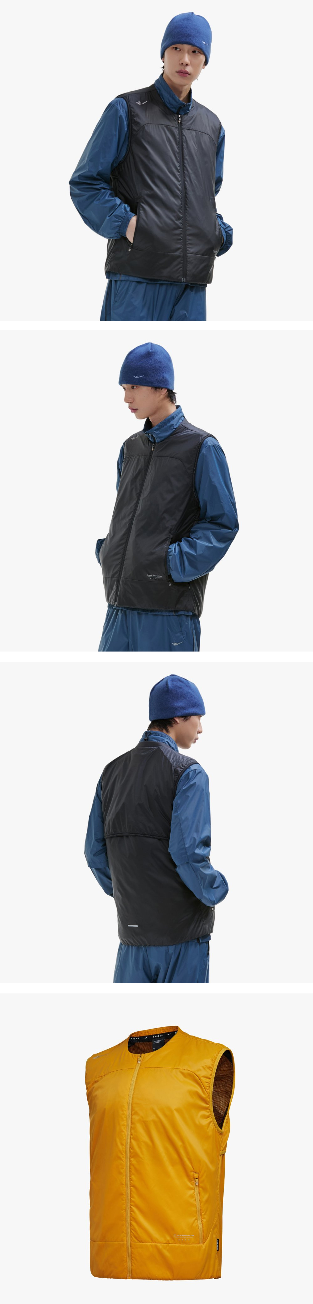 패딩 경량 러닝 베스트 경량 원단과 가슴부위 얇은 패딩 충전재 적용으로 경량성과 보온성이 우수함 등부위 벤틀레이션 기능으로 운동시 발생하는 열기를 빠르게 배출 하여 쾌적한 착용감 어깨라인 접밴드 사양으로 착용시 안정있는 착용감 제공