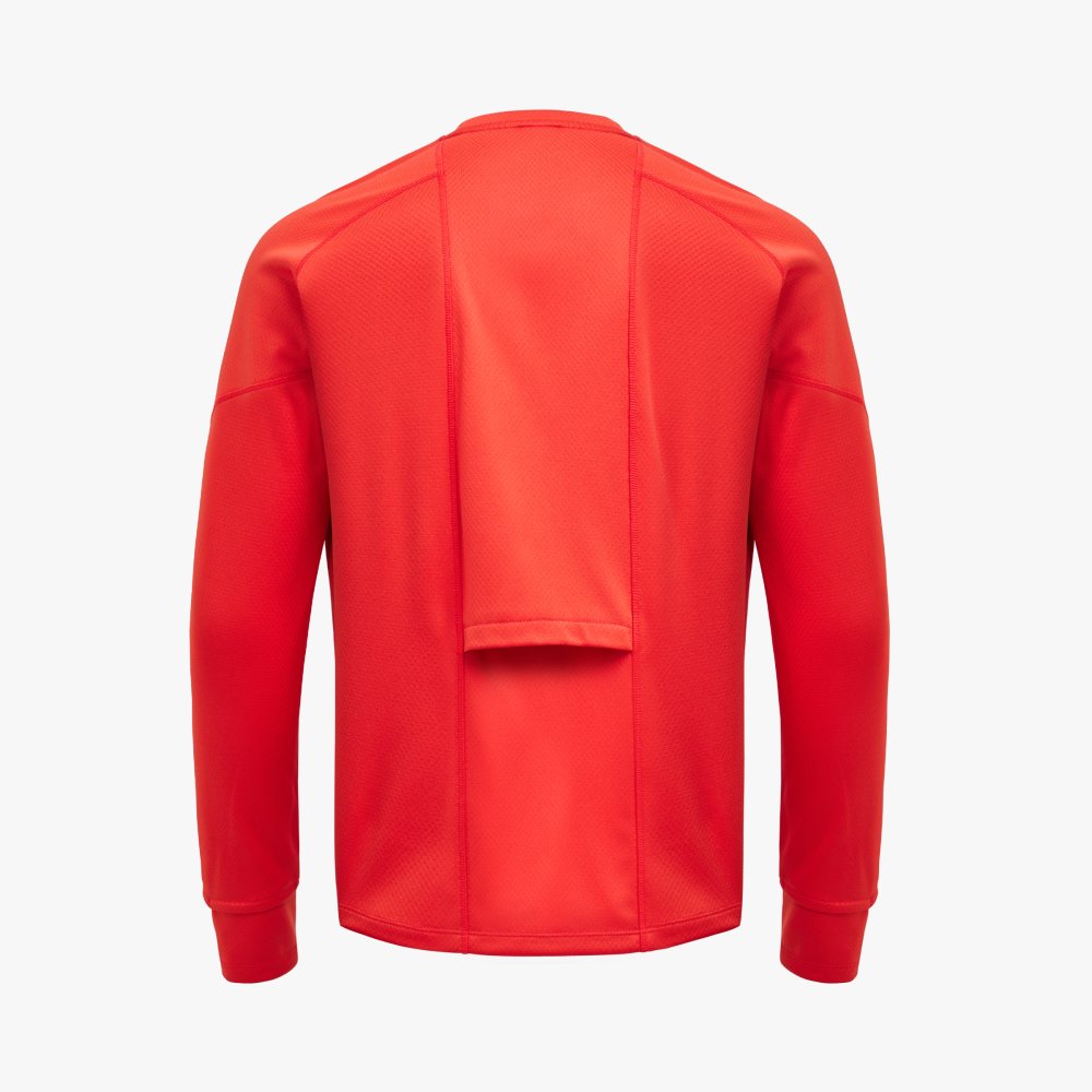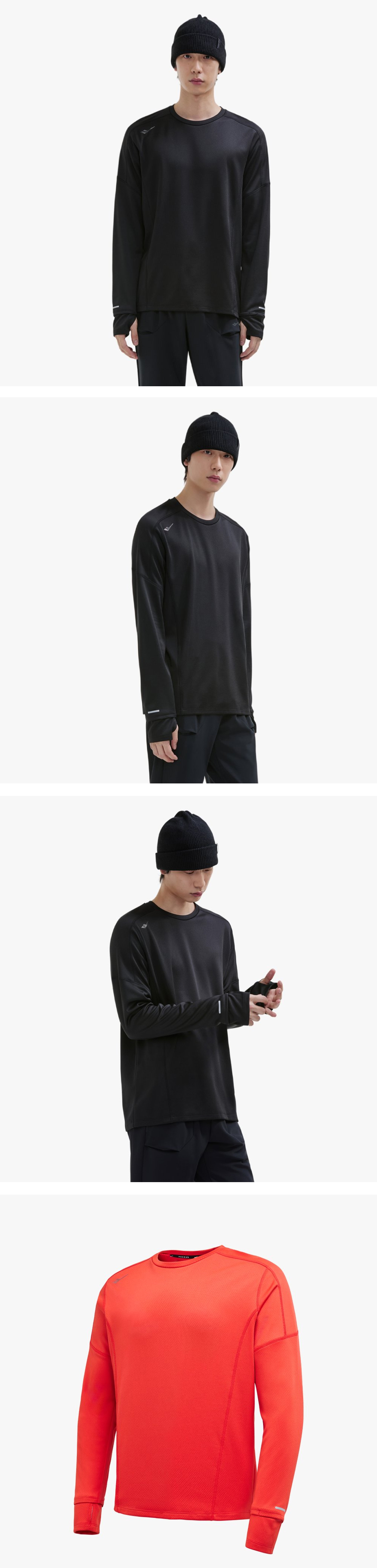 자카드 러닝 라운드 티셔츠 신체의 쓸림을 방지하기 위한 봉제 사양 적용 등 부위 벤틀레이션 사양 적용으로 신체에서 발생하는 열을 빠르게 배출 러닝 시 활용이 용이한 핑거홀 및 워치홀 사양 적용