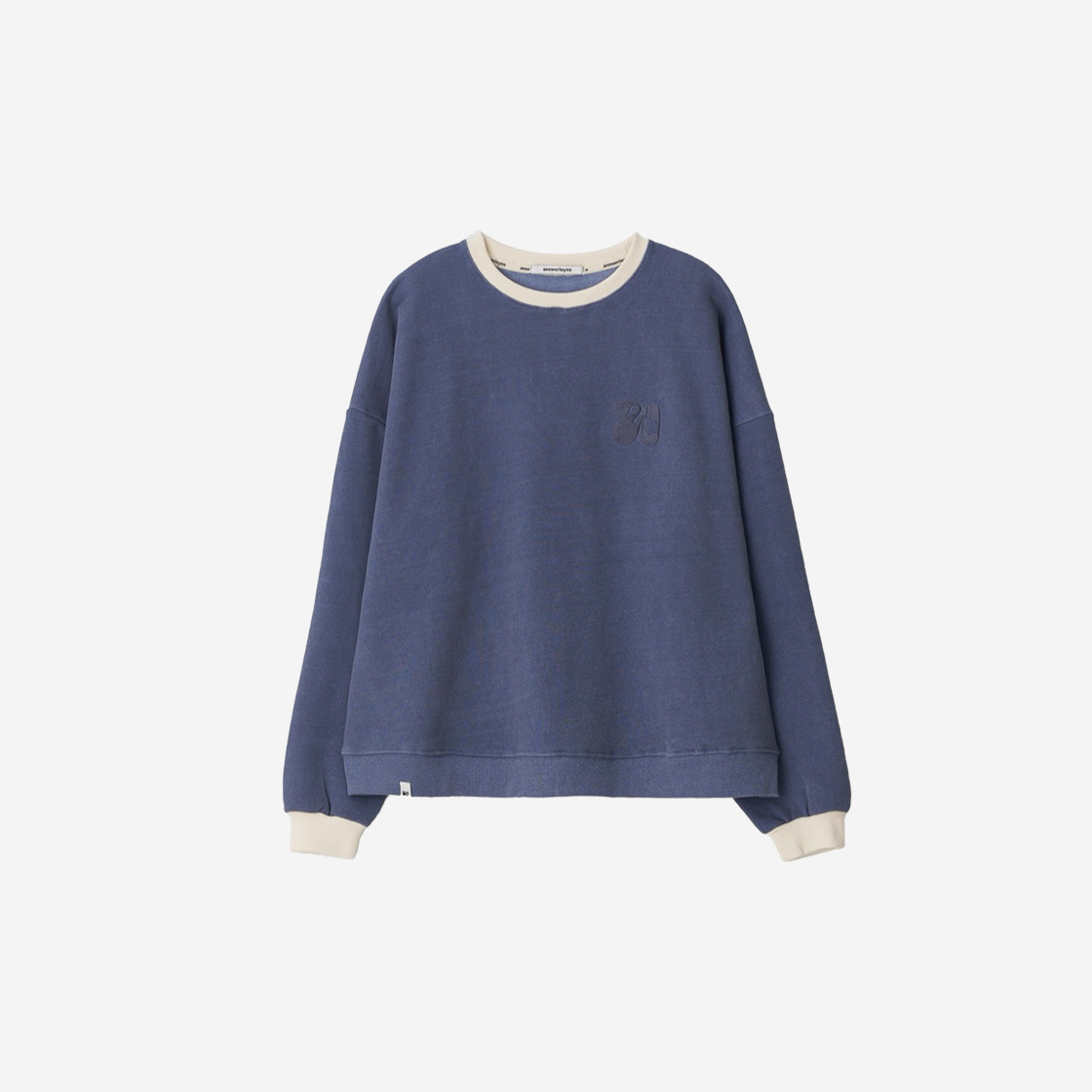 피그먼트 워싱을 거쳐 네추럴한 컬러감의 스웻셔츠 오버사이즈 디자인으로 캐주얼한 무드 넥라인과 소매끝 배색 디자인 앞면 견고한 로고자수 디테일 넥라인의 변형을 방지하는 로고테잎 사용