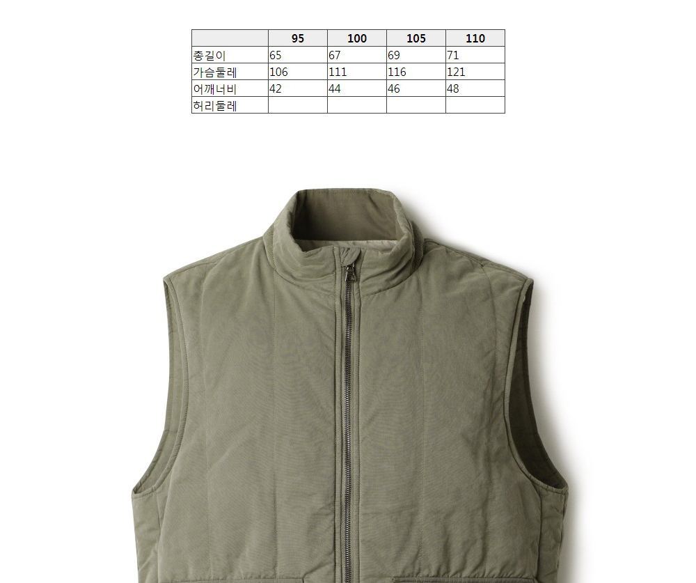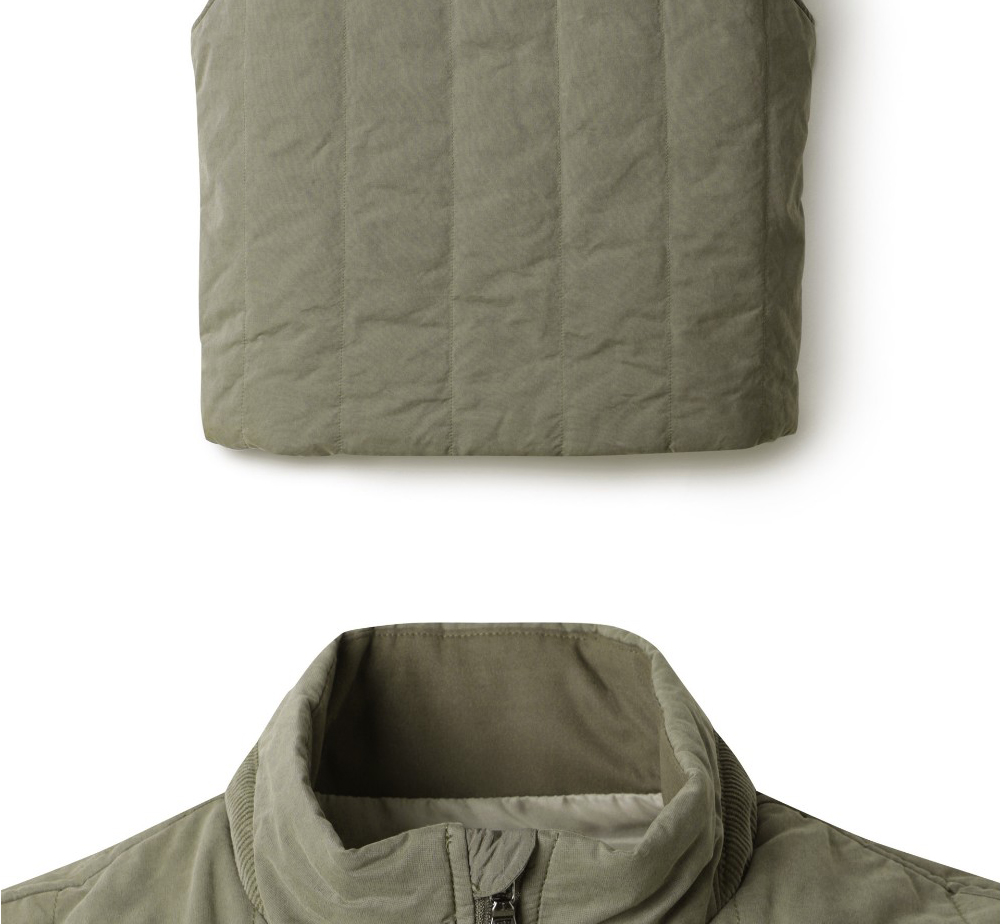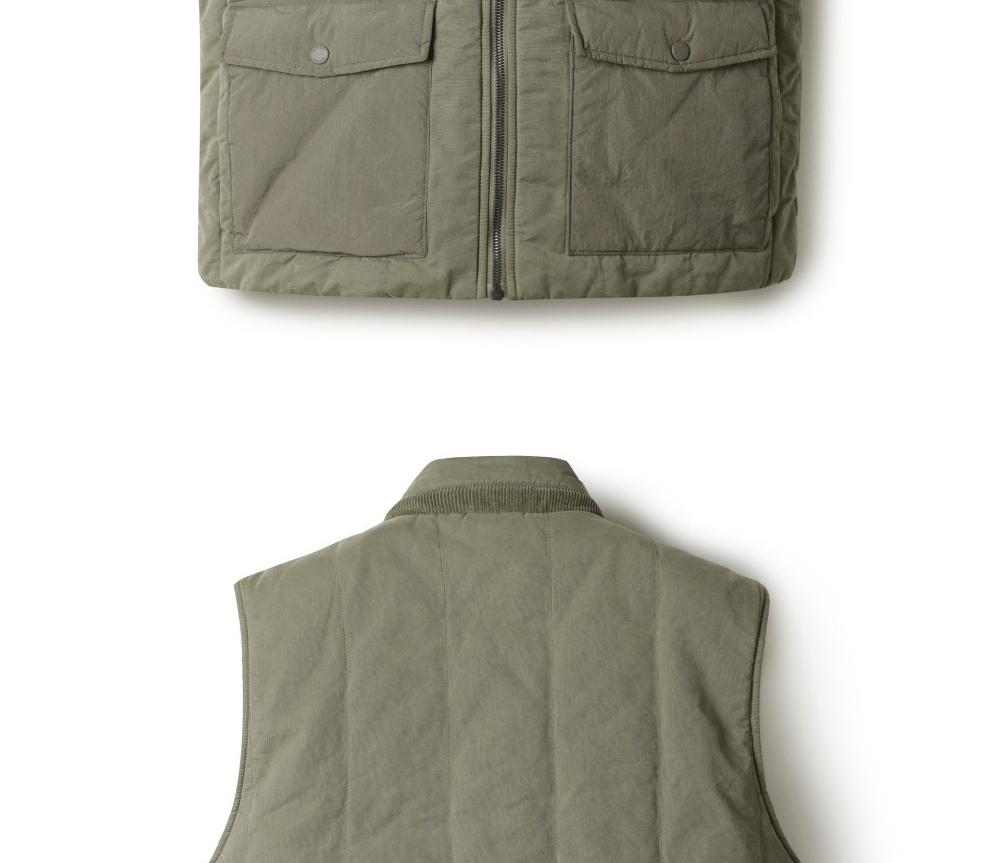 시리즈 스탠드넥 세로퀼팅 베스트 라이트 카키