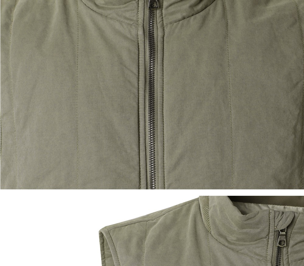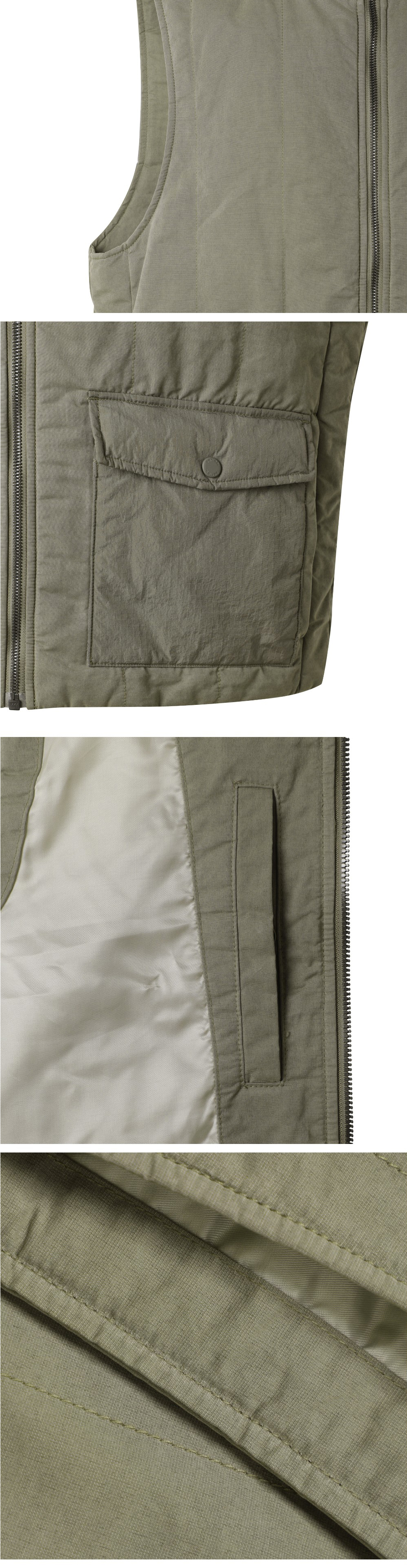SERIES Stand Neck Vertical Quilting Vest Light Khaki