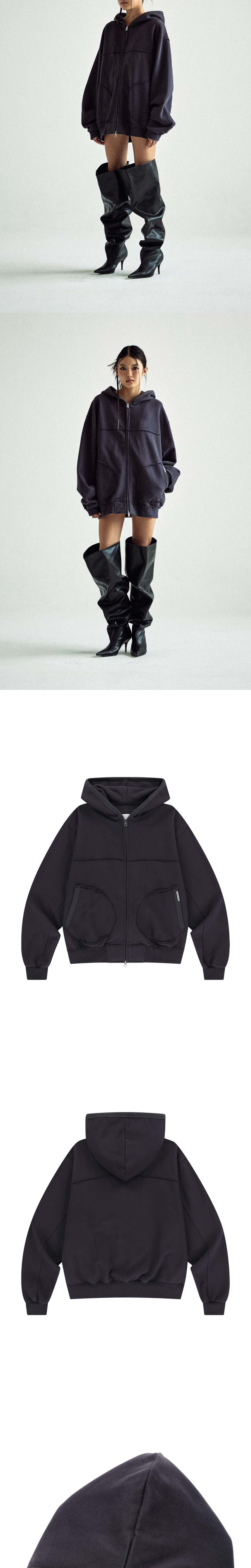 더바이닐하우스 컷 오프 후드 집업 퍼플
