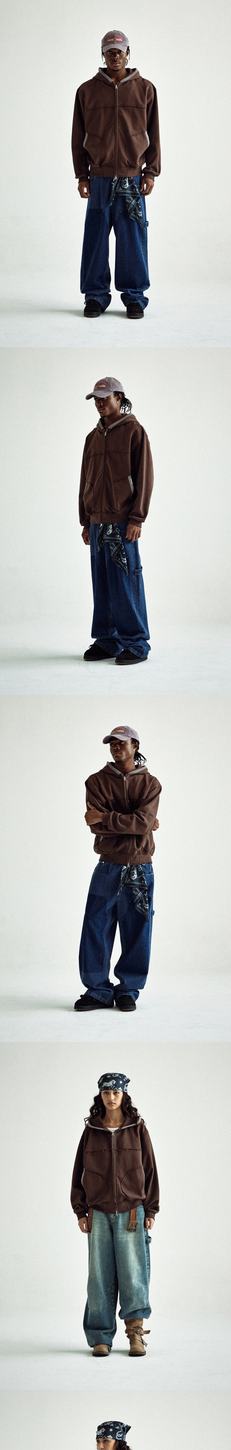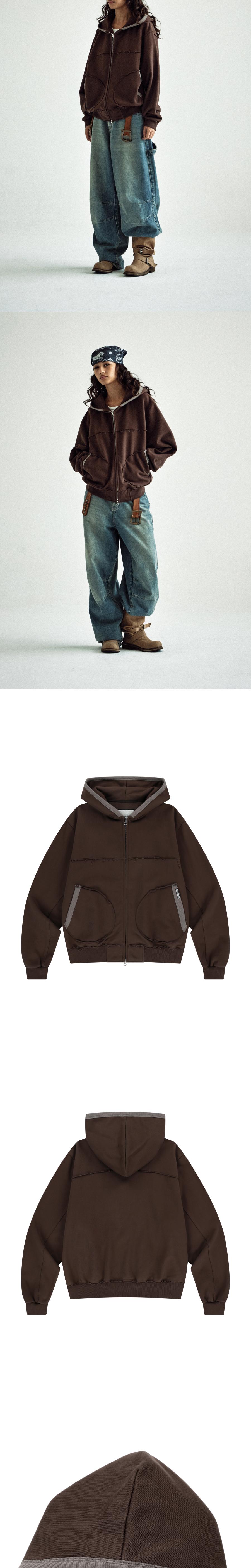 더바이닐하우스 컷 오프 후드 집업 브라운
