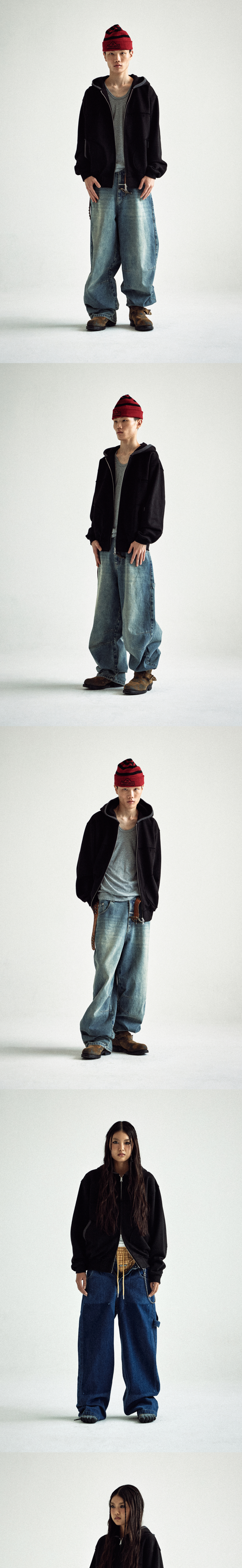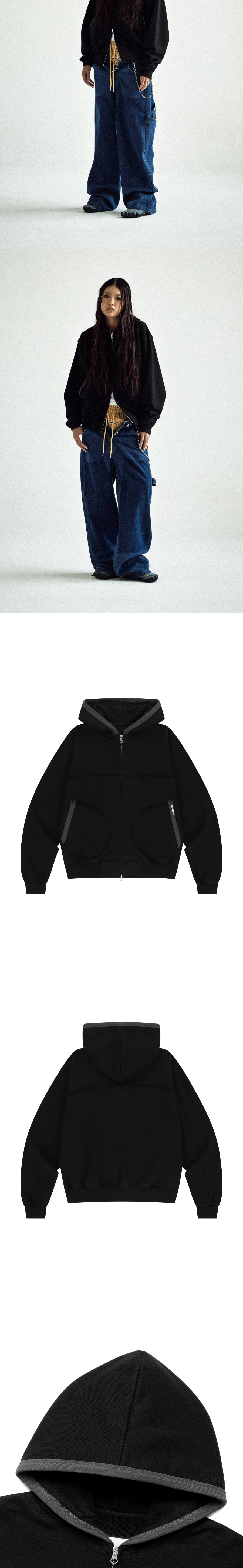 더바이닐하우스 컷 오프 후드 집업 블랙