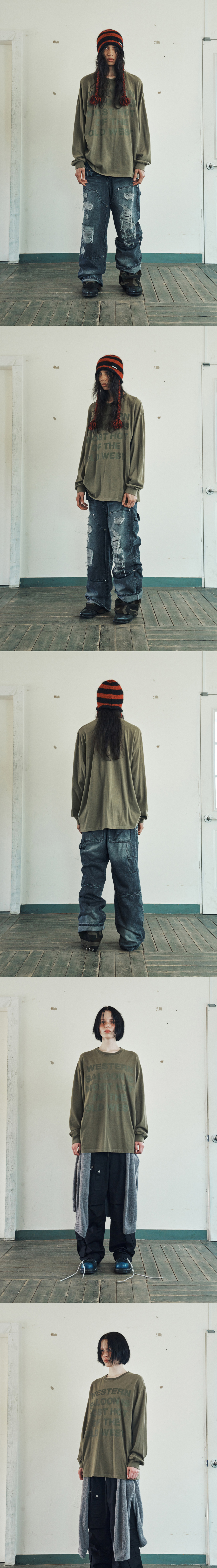 더바이닐하우스 올드 웨스트 타이포 롱슬리브 티셔츠 올리브