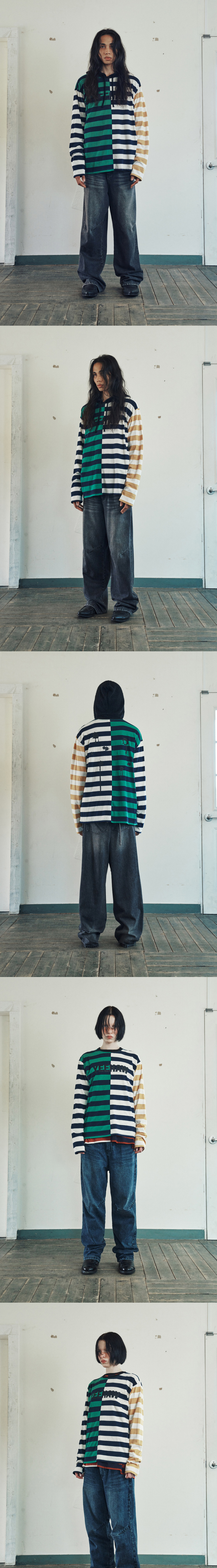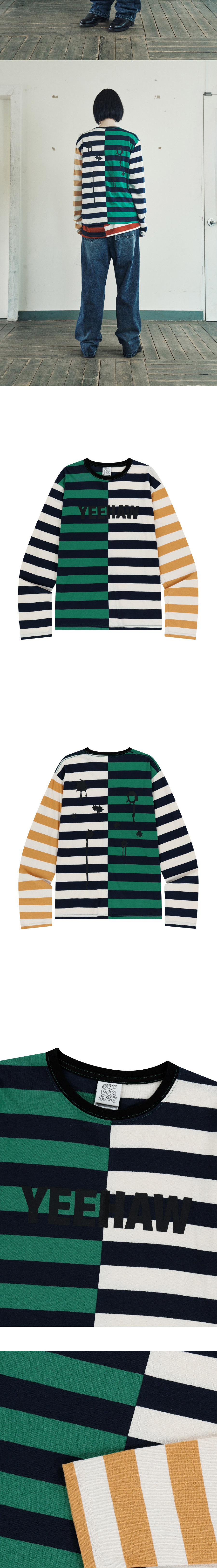 더바이닐하우스 페인팅 스트라이프 롱슬리브 티셔츠 그린