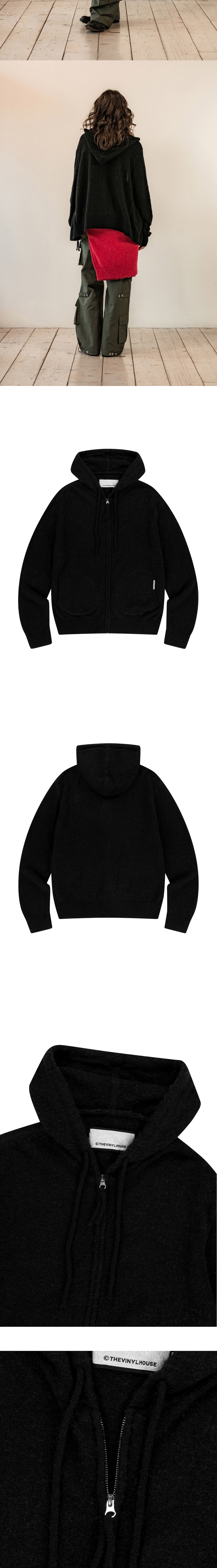 더바이닐하우스 라운드 포켓 니트 집업 블랙