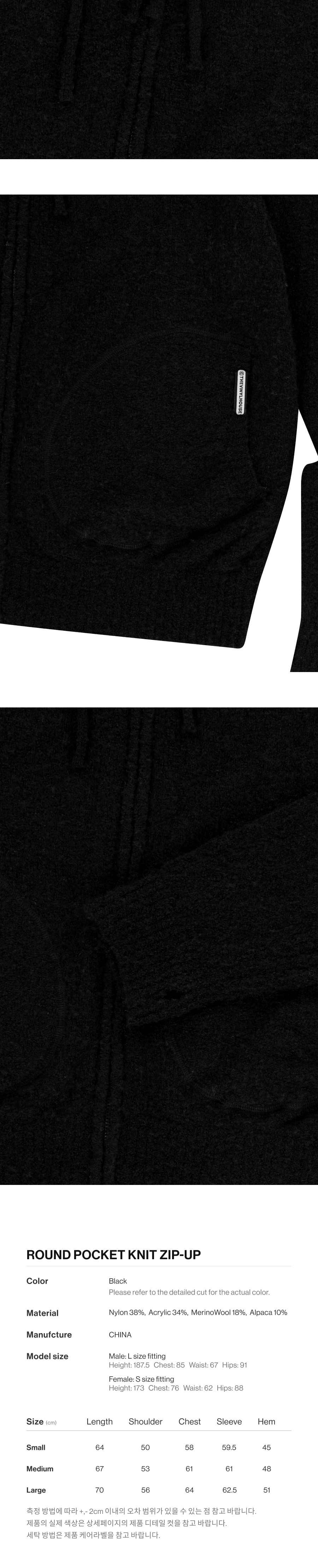 Thevinylhouse Round Pocket Knit Zip-Up Black