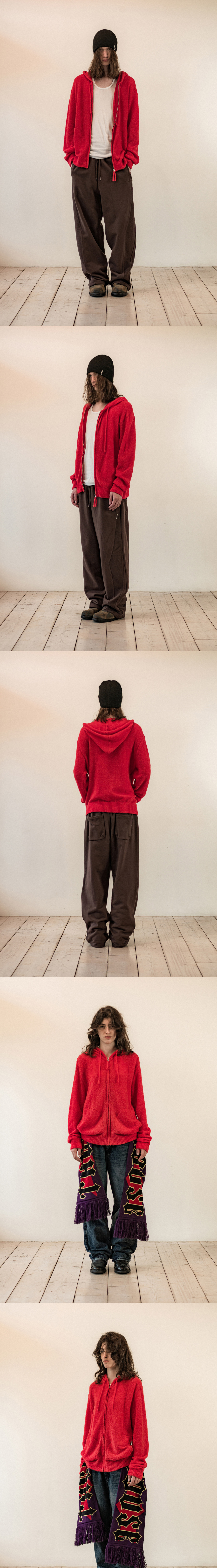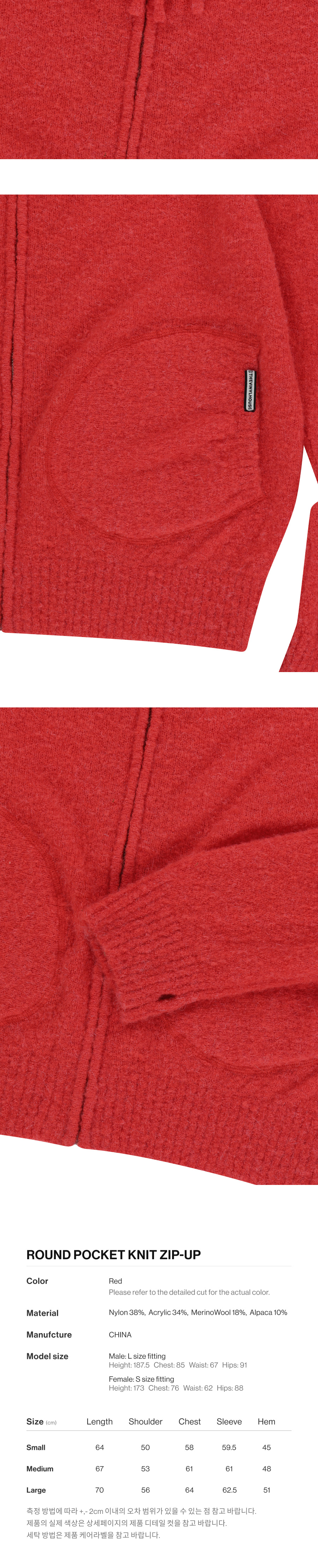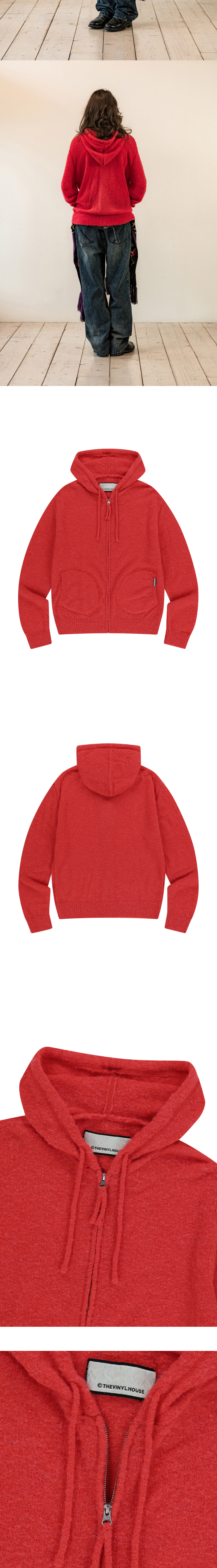 더바이닐하우스 라운드 포켓 니트 집업 레드