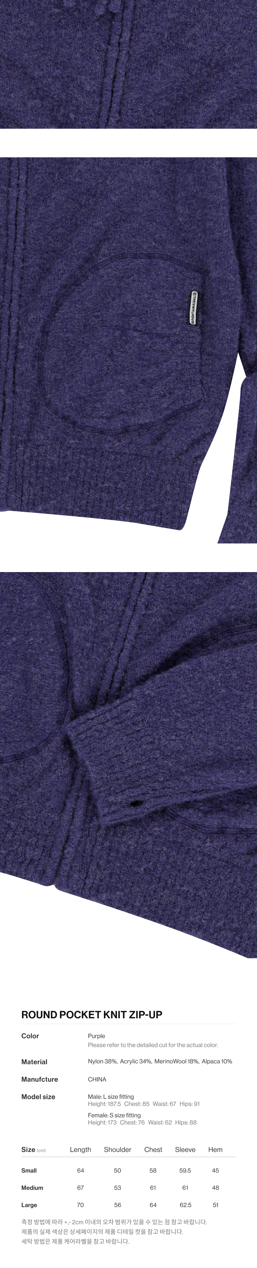 Thevinylhouse Round Pocket Knit Zip-Up Purple