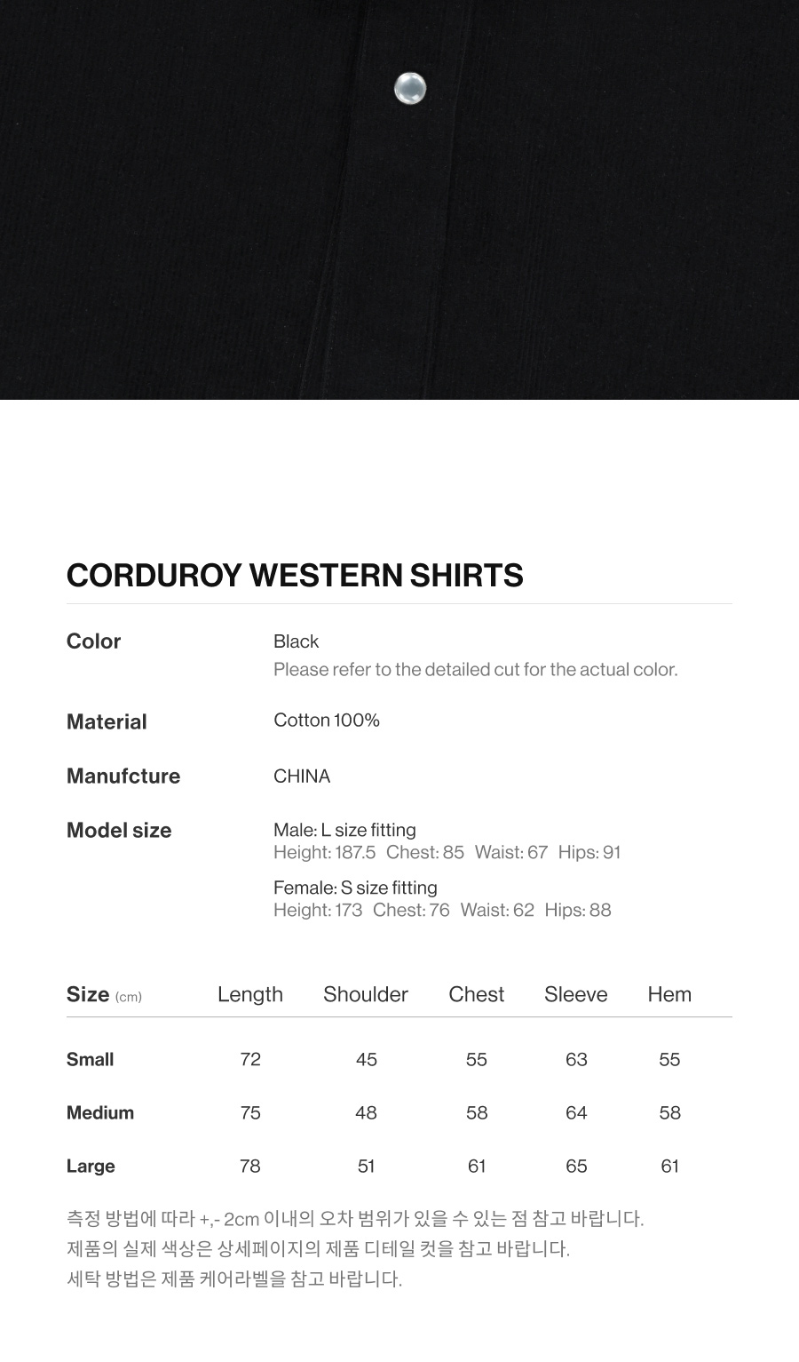 더바이닐하우스 코듀로이 웨스턴 셔츠 블랙