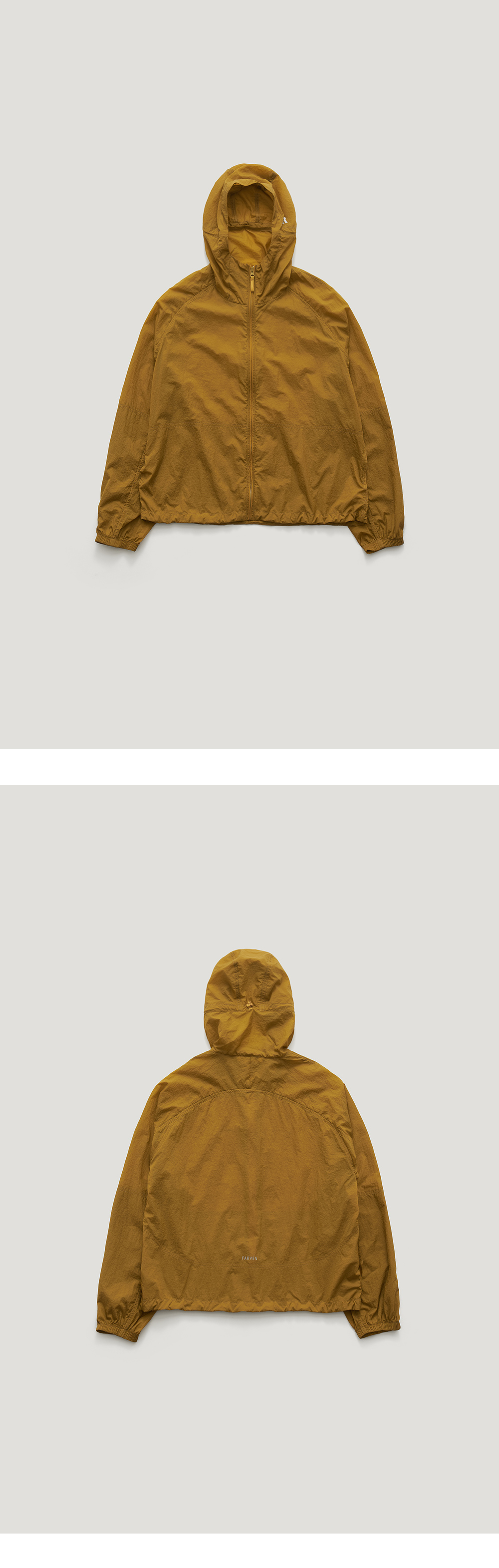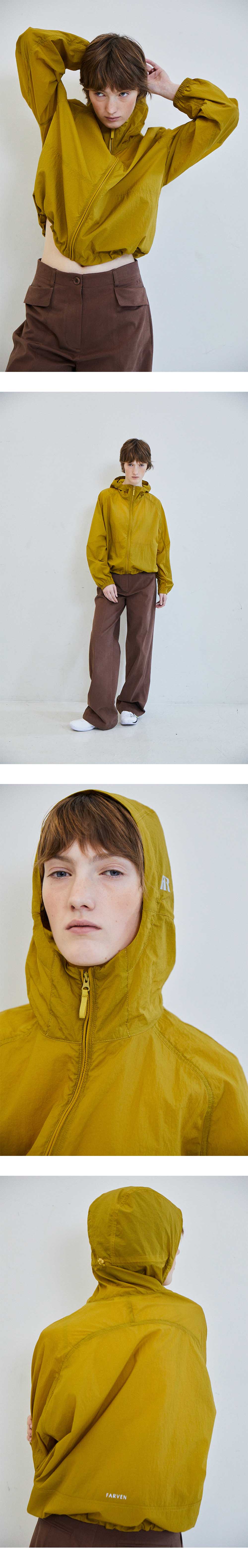 [배송 안내] *해당 상품은 9/25(수)부터 순차적으로 예약 배송되는 상품입니다. 여유로운 실루엣으로 사이즈 구애 없이 캐주얼하게 착용 가능한 윈드브레 이커 점퍼입니다. 사계절 모두 착용 가능하도록 라이트한 두께감과 바스락 거리는 터치감으로 이루어진 나일론 소재로 제작했습니다. 자연스러운 비 침이 있어 실루엣이 드러나며 다양한 컬러의 이너와 레이어드하기 좋은 아 이템입니다. 후드 사이드와 뒷판 하단에 스카치 프린팅 디테일을 활용해 디자인에 포인트를 주었습니다. 기존 제품보다 탄탄하고 두께감이 느껴지 는 원단을 사용했으며 제조국을 변경하여 높은 퀄리티로 마무리했습니다.