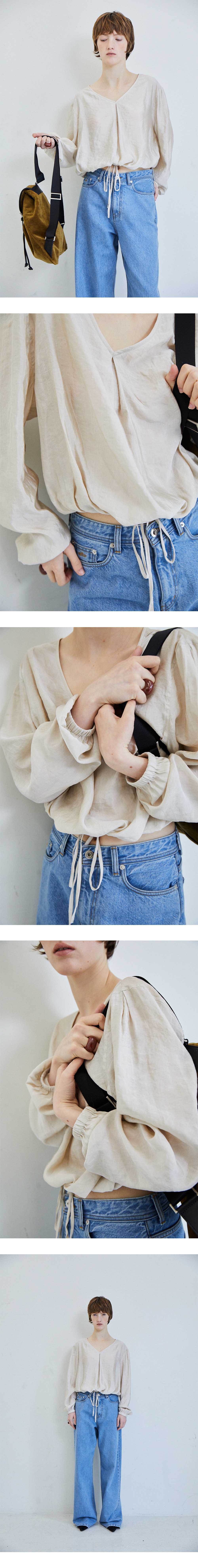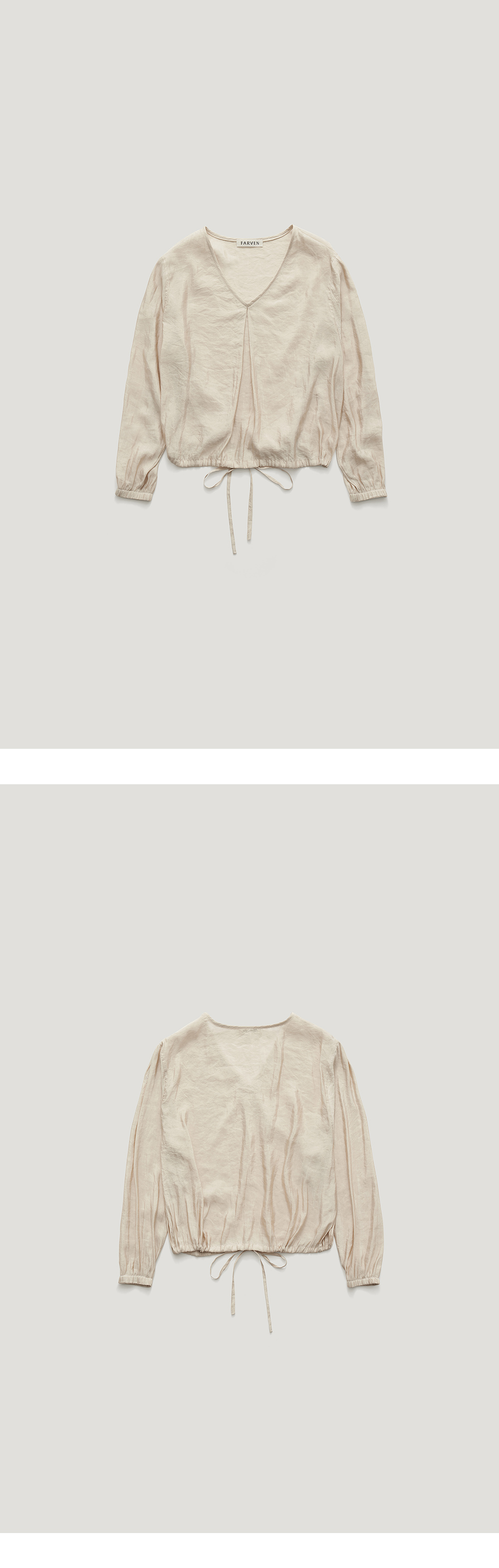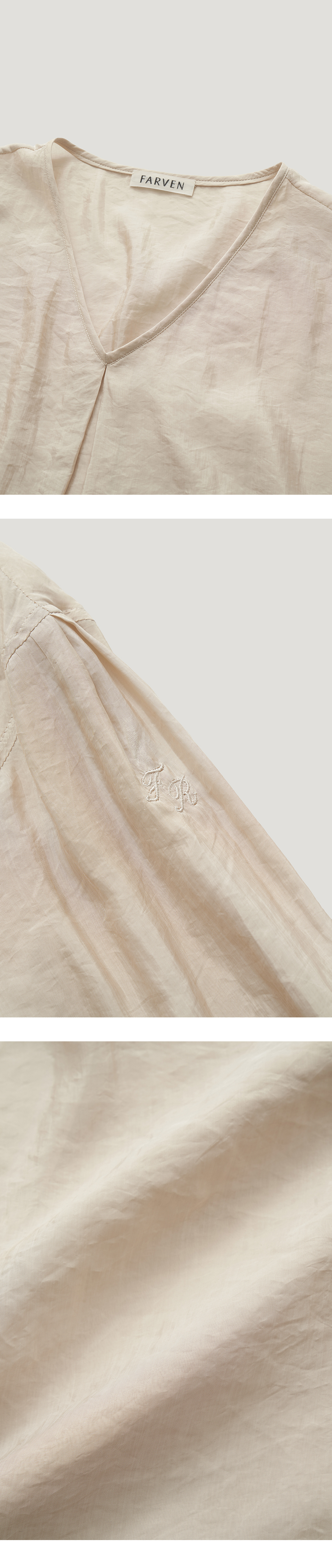 [배송 안내] *해당 상품은 10/7(월)부터 순차적으로 예약 배송되는 상품입니다. 은은한 광택감과 가볍고 섬세한 텍스쳐가 돋보이는 적당한 파임의 V 넥 블라우스입니다. 넥과 어깨에 잡혀 있는 맞주름으로 인해 입체적인 실루 엣이 돋보이며 몸판 밑단 스트랩을 활용하여 다양한 핏으로 연출이 가능 합니다. 어깨 맞주름 사이 파르벵 로고 자수 디테일로 포인트를 주어 마무 리했습니다. *얇고 섬세한 실로 만들어진 소재로 지속적인 마찰과 습도, 착용의 상태에 따른 미어짐이 발생할 수 있습니다.착용 후 보관 시 온도 및 습도가 낮고 통풍이 잘 되는 곳에서 보관해 주세요.