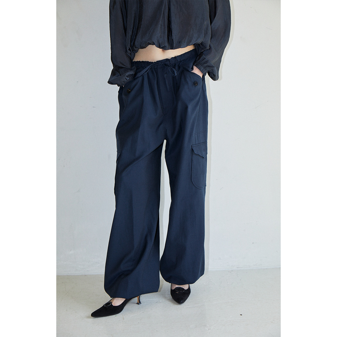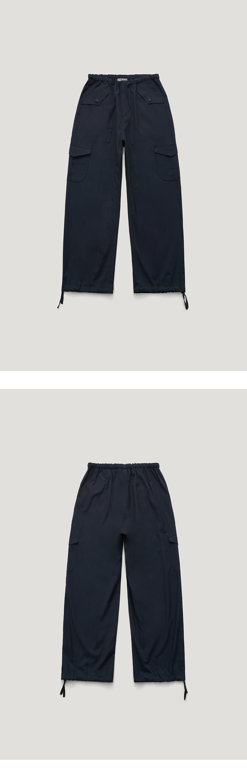 [배송 안내] *해당 상품은 9/25(수)부터 순차적으로 예약 배송되는 상품입니다. 179G 중량의 부드러운 코튼, 레이온 혼방 소재로 만들어진 카고팬츠입니다. 릴랙스드 핏으로 이루어져 있으며, 포켓의 덮개 한쪽에는 FR로고가 자수로 장식되어 있으며, 사이즈 조절이 가능한 패브릭 스트랩과 버튼이 있습니다. 네이비, 블랙, 아이보리 3가지 컬러로 아이보리컬러에는 안감이 있어 비침을 최소로하였으며 일상에서 다양하게 스타일링하기 좋은 팬츠입니다.